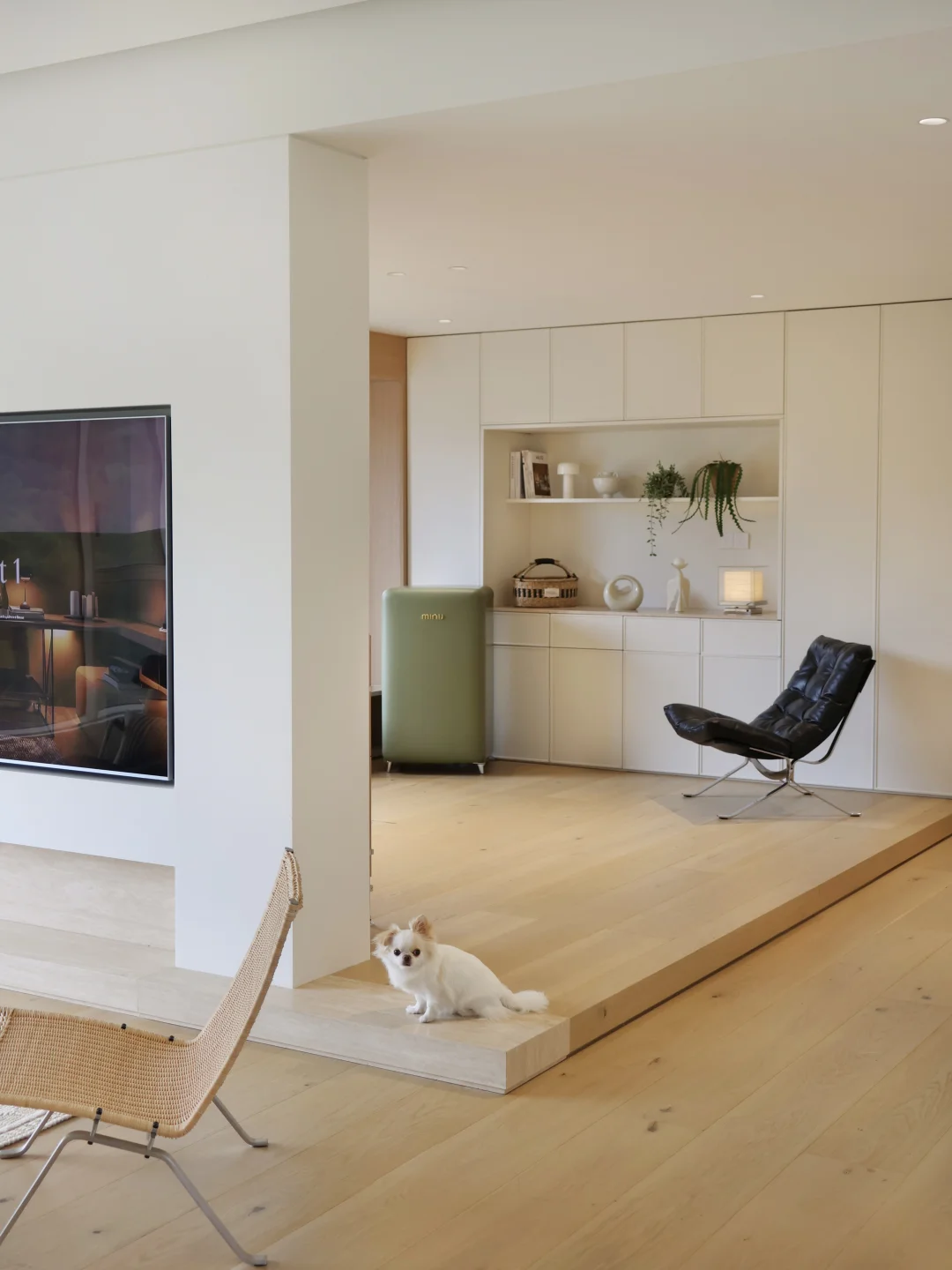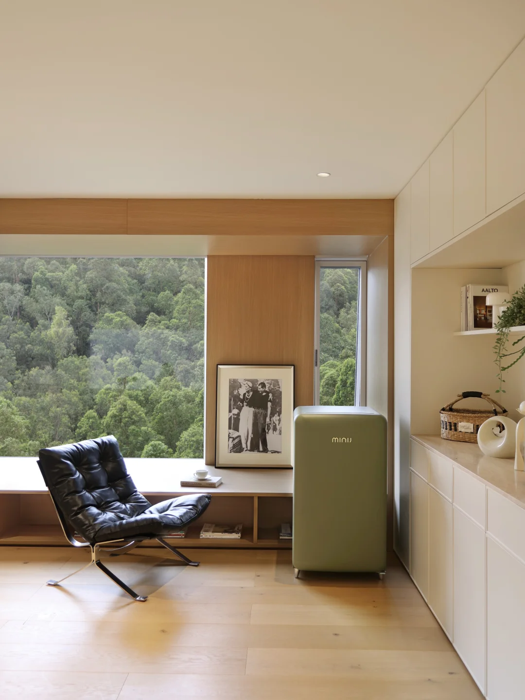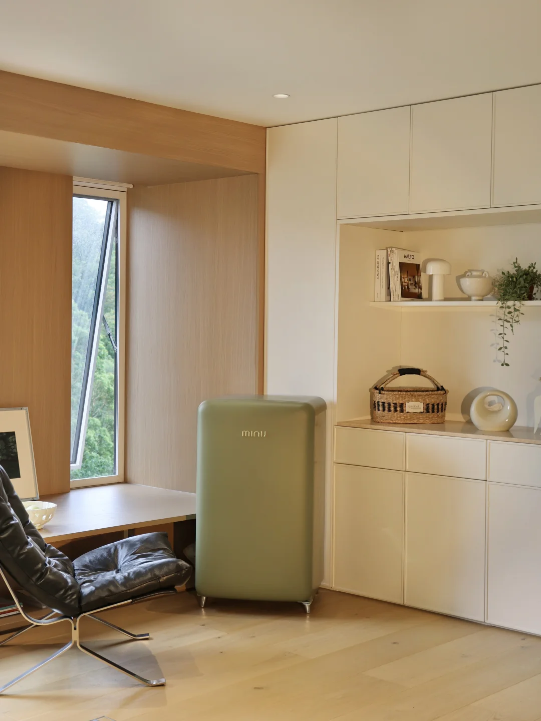 还特意在休闲室安排了一台牛油果绿的小吉复古小冰箱,这个颜色真的太戳我了~