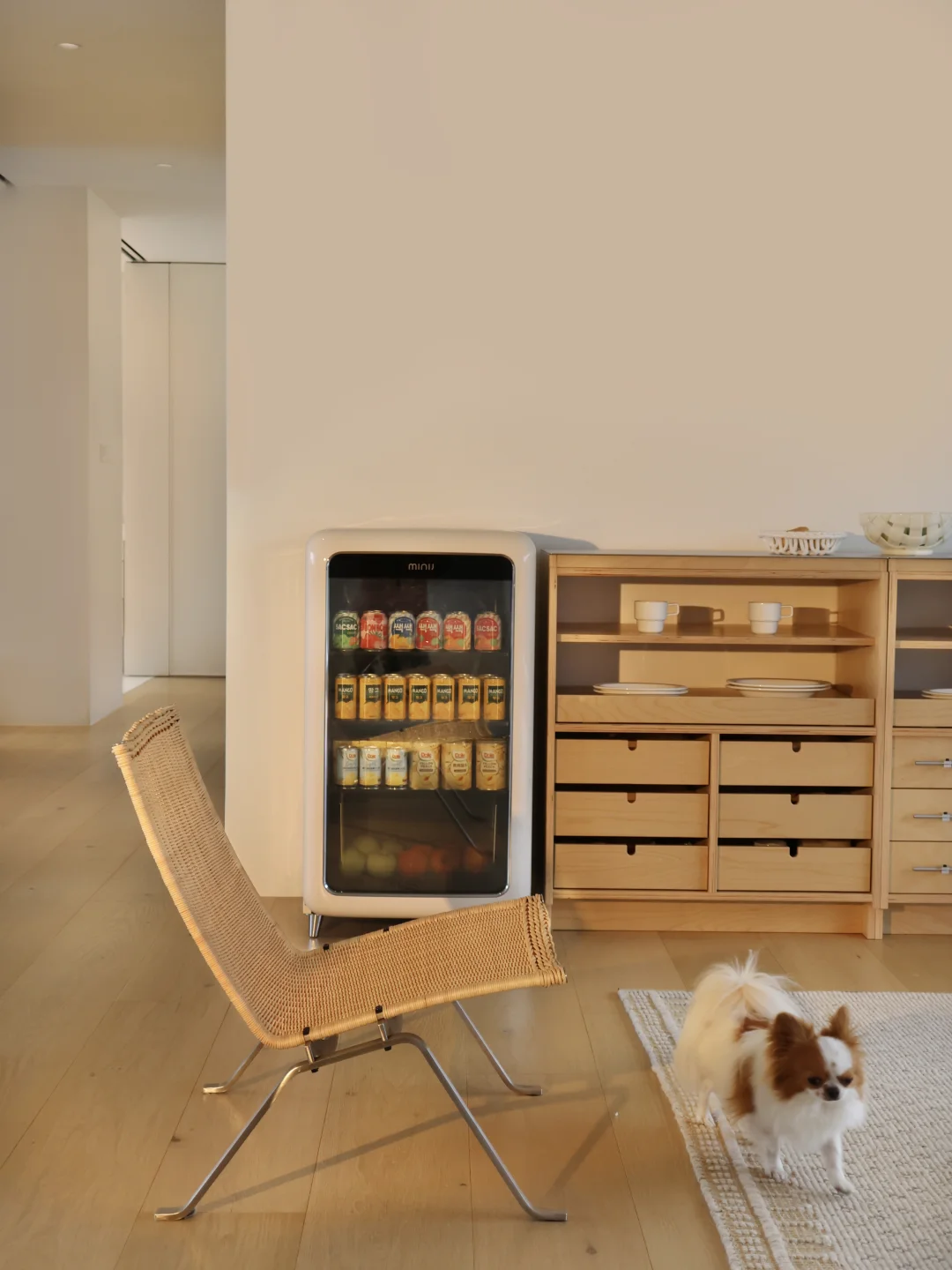 比如客厅。以前想喝瓶饮料还得跑进厨房翻半天大冰箱,现在我在角落摆了台小吉复古冰吧