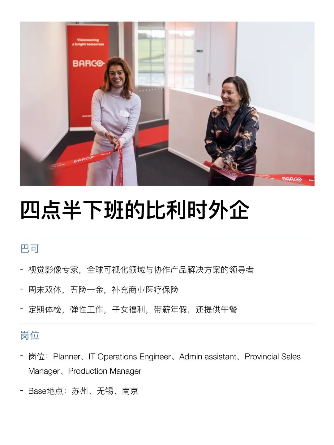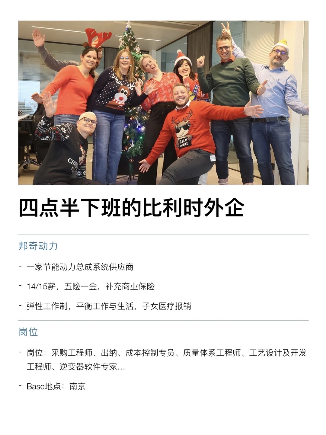 说“四点半下班”,其实是说他们不卷、准点走,真实的节奏大多是 9-5、9-5:30 那种,待着非常舒服。这次整理的 3 家比利时外企也都挺典型的:做生物技术、影像、动力的