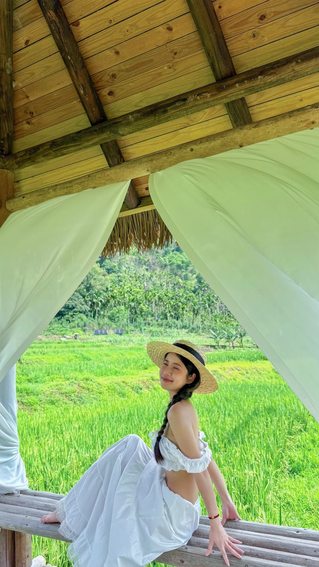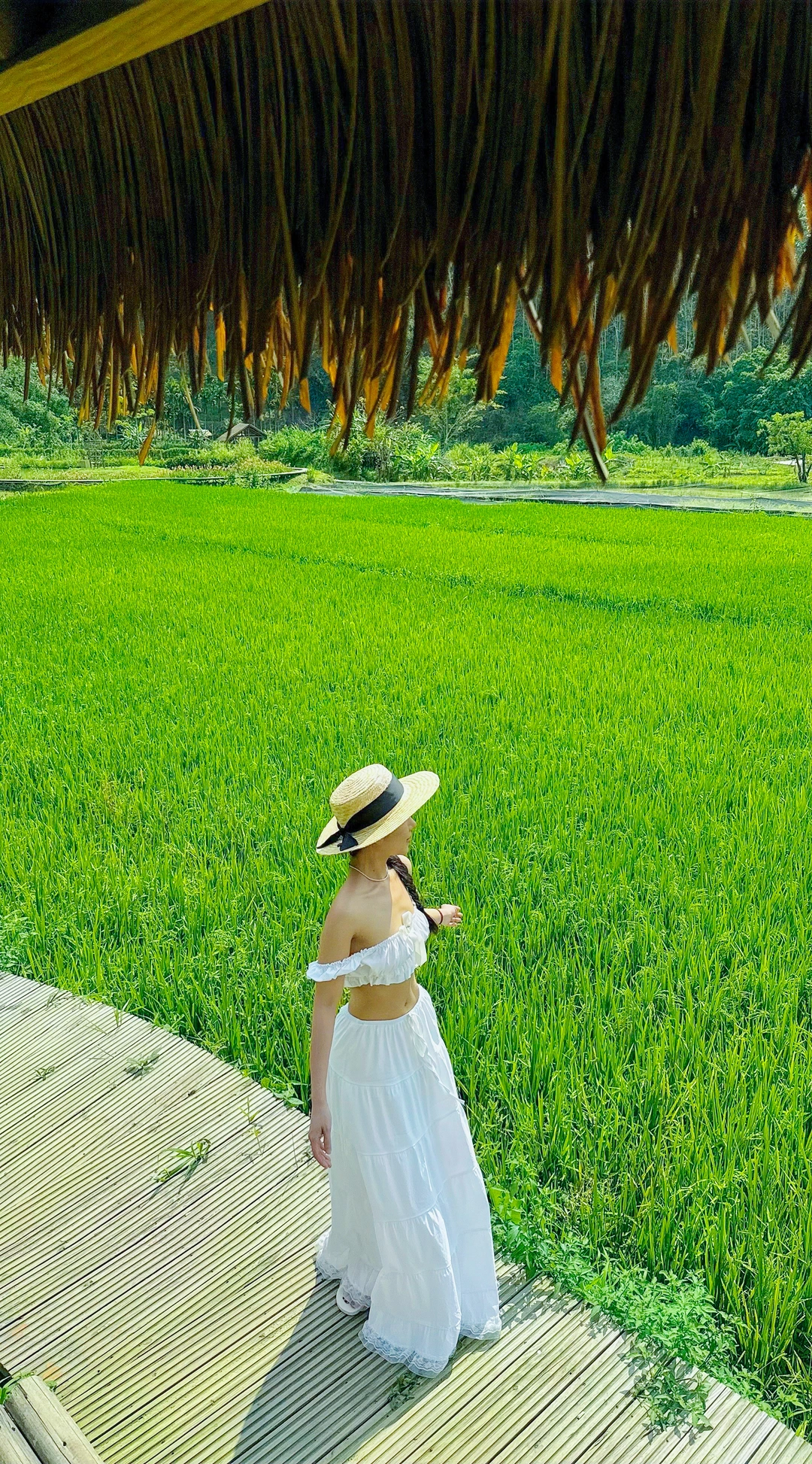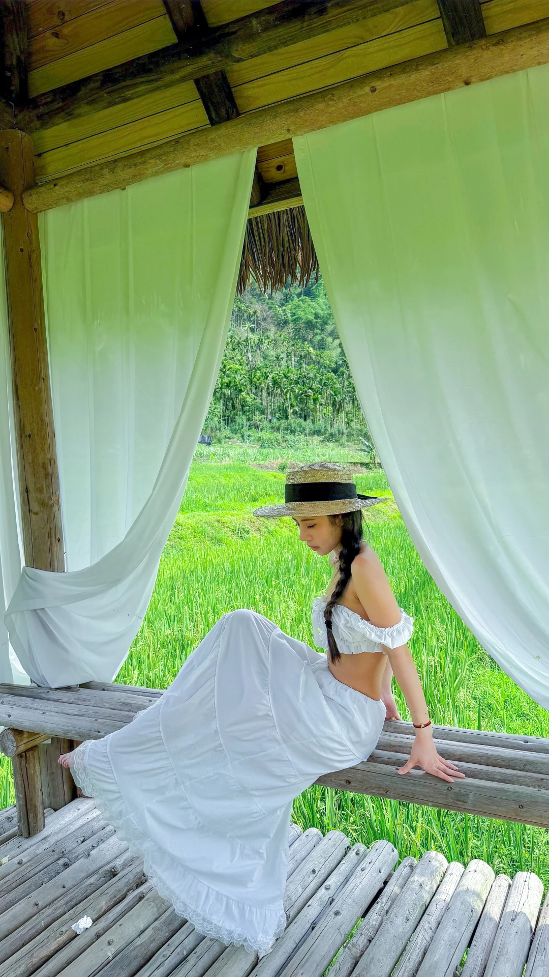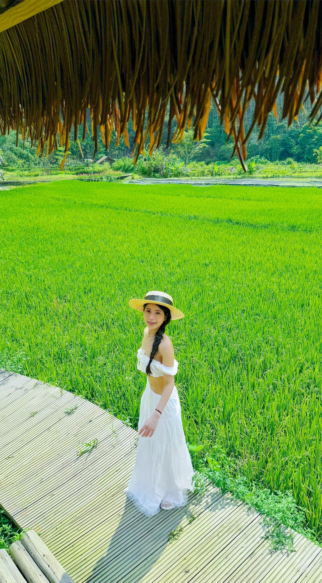 还有这个季节限定的层叠梯田,阳光穿过云层,洒在灌满水的田面上,天光云影共徘徊,仿佛走进宫崎骏的动画里。穿条白裙子,随手一拍都是治愈系大片~