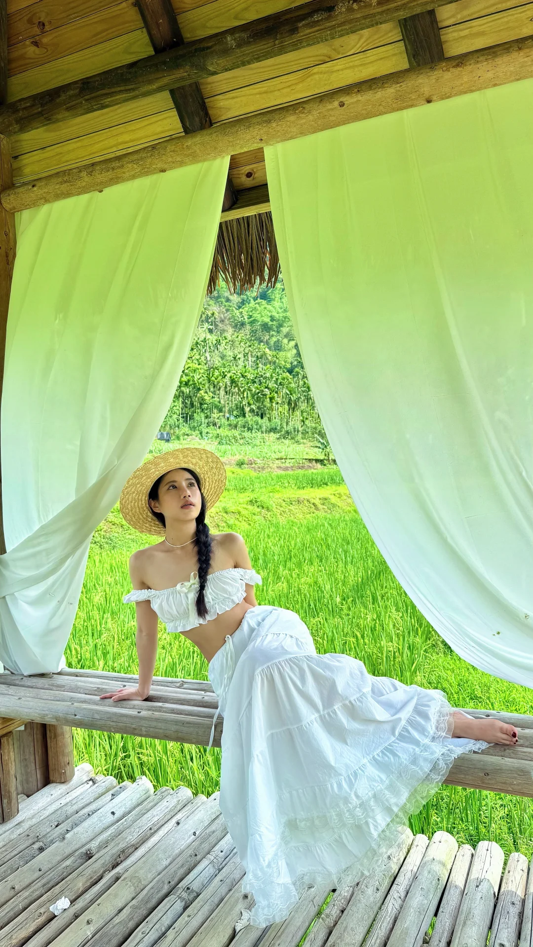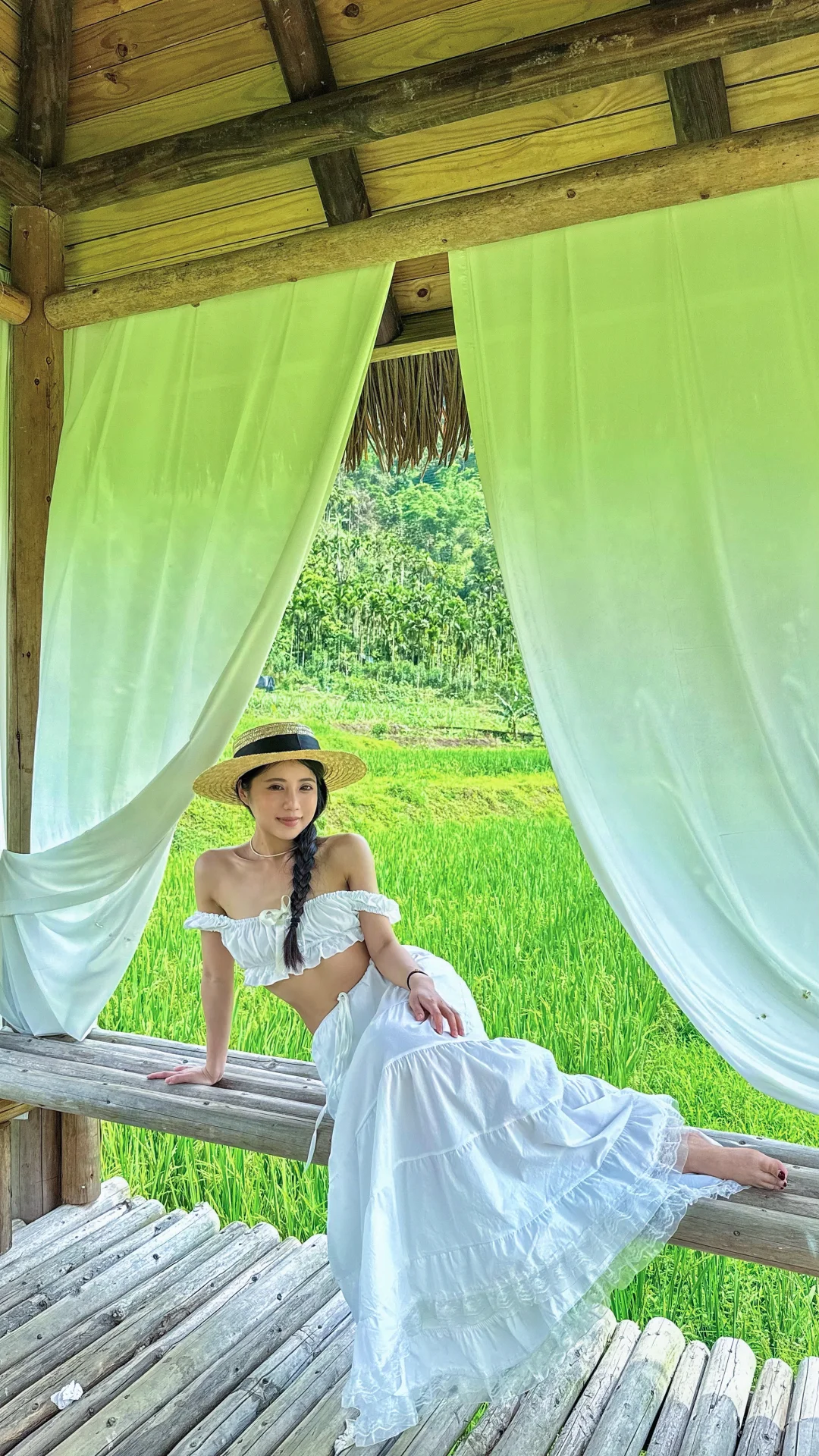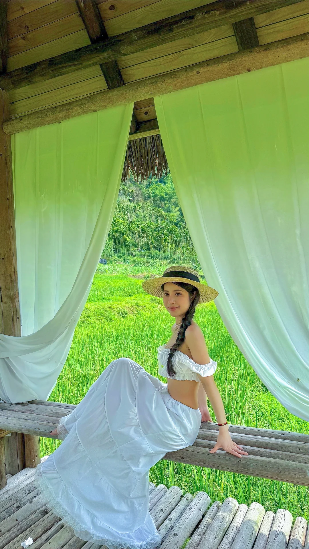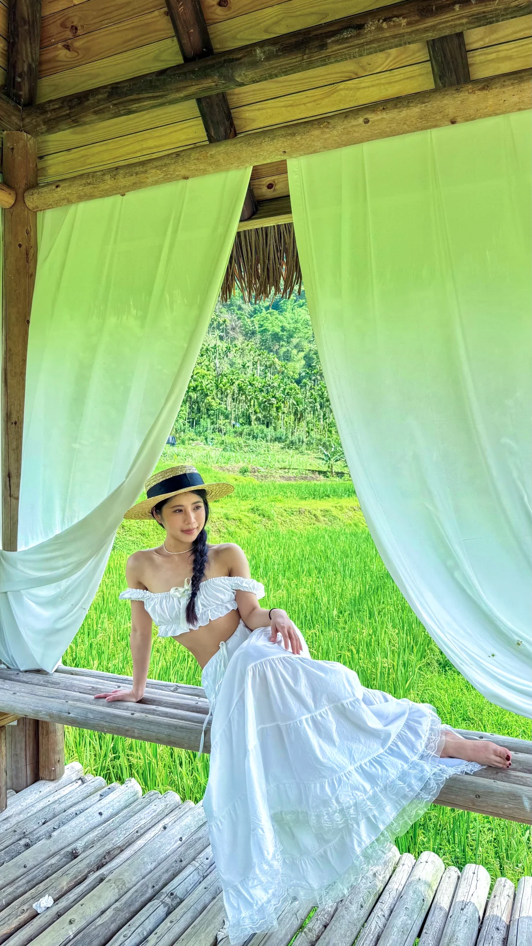 还有这个季节限定的层叠梯田,阳光穿过云层,洒在灌满水的田面上,天光云影共徘徊,仿佛走进宫崎骏的动画里。穿条白裙子,随手一拍都是治愈系大片~