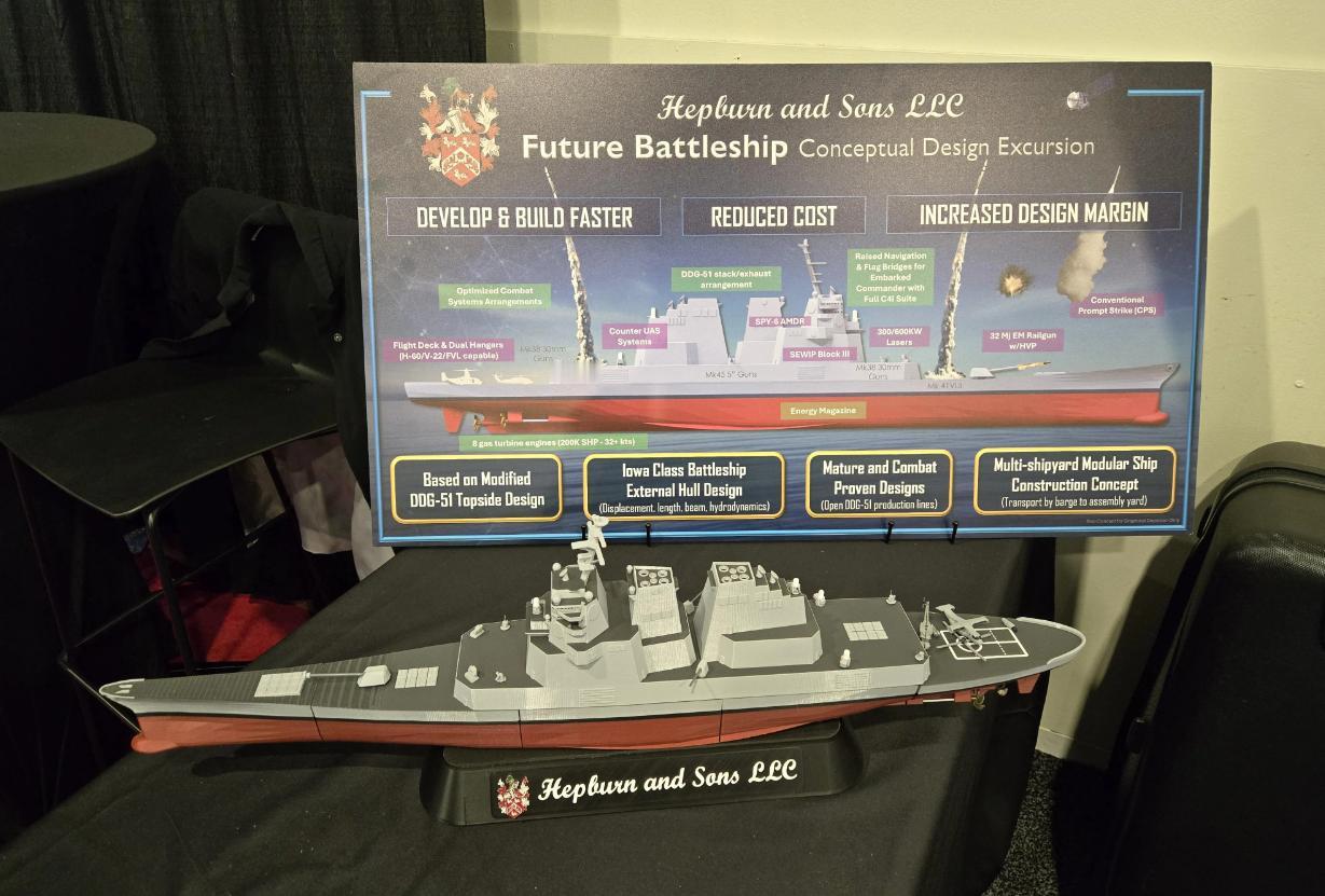 据美媒报道,在美国海军海事博览与研讨会“海空天-2026”现场,一家名为赫本父子公司的美国船舶设计研发企业,公开了自己准备用来参与“特朗普”级战列舰竞标工作的方案模型。基本上,其算是把“拿来主义”给彻底玩明白了,即沿用上世纪40年代诞生的美国海军最后一款投入服役的战列舰“衣阿华”级的舰体,并在舰体上安装可发射高超音速武器的专用垂直发射系统、可发射防空导弹和巡航导弹的MK-41通用垂发系统、1门电磁炮和2门127毫米口径舰炮等武器,以及沿用现有的“伯克-III”型驱逐舰的船电系统。