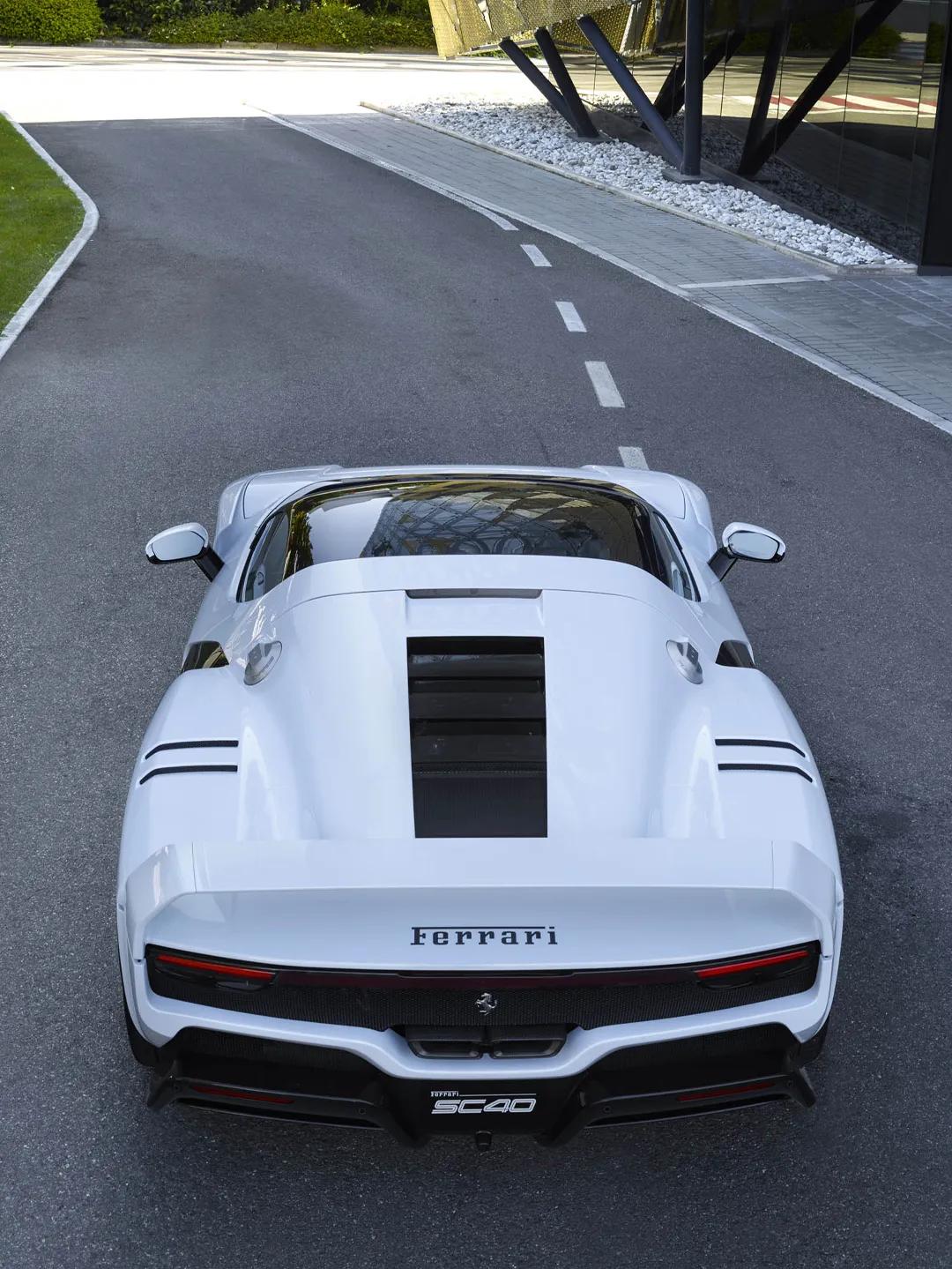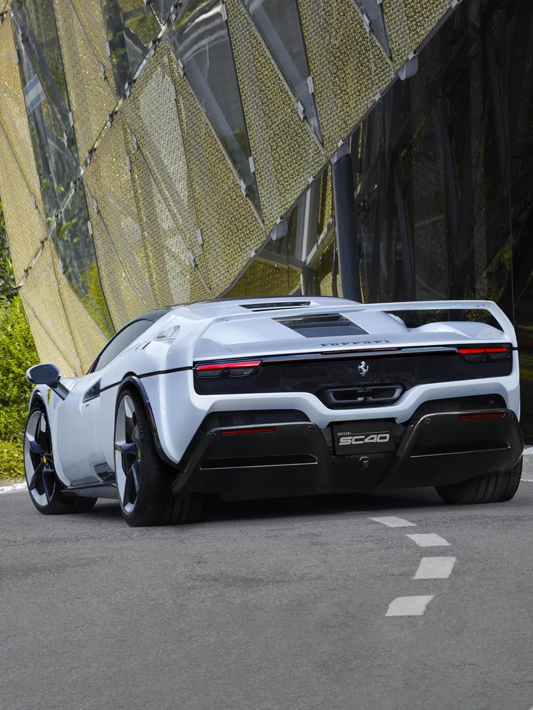 法拉利SC40,由设计总监弗拉维奥·曼佐尼基于296 GTB打造。车长4700毫米,宽1975毫米,高1198毫米,干重1550千克。混合动力V6引擎综合输出610千瓦、740牛米,零百加速2.9秒,极速超330公里/小时。该车为收藏家一次性定制,官方未公布售价,据估算约合人民币8000万元起。