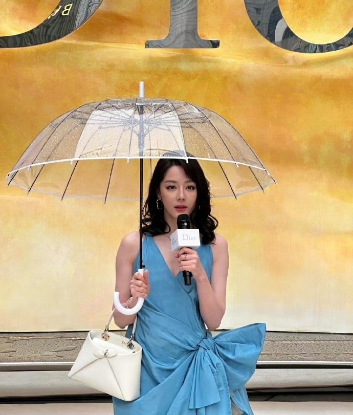 今天迪丽热巴在出席活动的时候变身雨中女神,她这回特意挑选了一件蓝色的裙子,这件裙