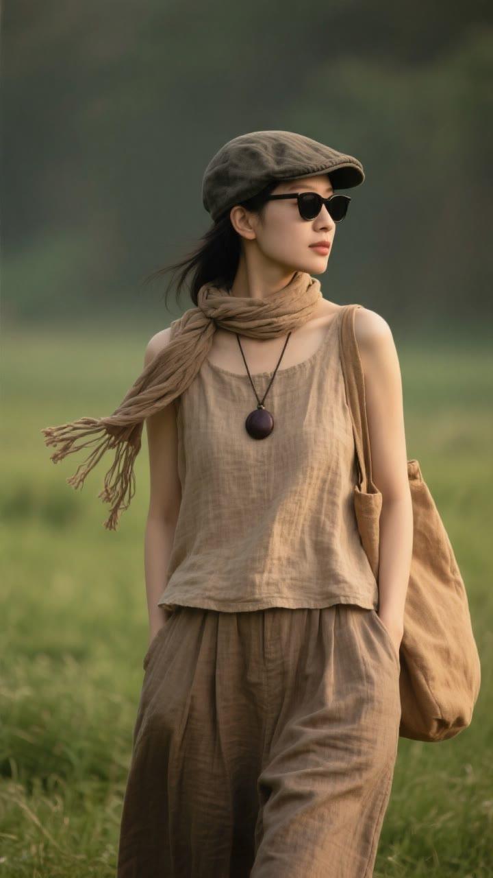 题晴日健身晴光漫染运动场,健步轻扬笑靥香。一身暖褐裁春意,不借铅华自飒爽