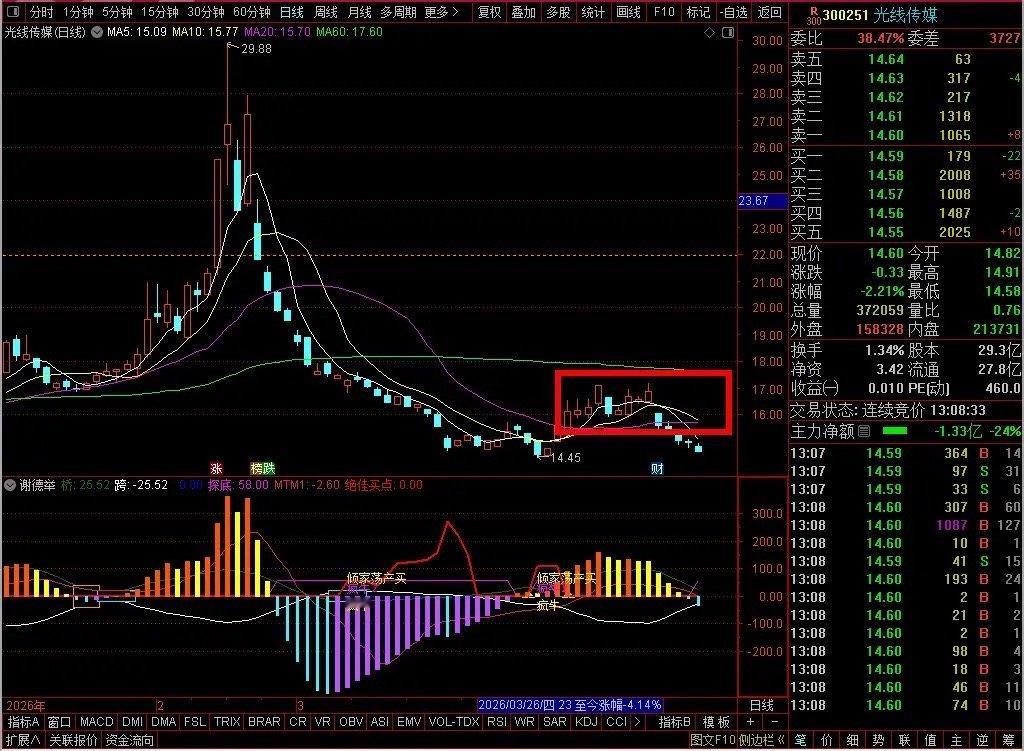 这两天最强的是铜箔。新能源线活跃,稀土永磁无量能不及预期,光伏板块4连阴!业绩不及预期!大科技板块方面,目前机构资金做切换!科创芯片ETF(指数基金)创新高了。GPU,算力、晶圆代工最近3天堆量上涨,机会大于风险。一个逻辑:去弱留强!5天线上方的股票可以持有!跌破5天线,技术上止盈,跌破10天线,预示主力资金已经出货,散户应该如何操作,秃子头上的虱子明摆着,走人!国货航跌跌不休已经跌破5日10日20日甚至60日均线都跌破。恒天海龙也是相继跌破5日10日20日甚至60日均线,其业绩大幅下降,炒作全资子公司北京多弗海龙飞控科技有限公司收购西安市群健航空精密制造有限公司不少于40%股权,无疑是配合大股东减持的拉高出货。光线传媒在主力清仓后,股价跌破5日10日20日甚至60日均线。光线传媒一季度营业收入和净利润都出现了明显下滑。其营业收入为1.91亿元,同比下降近94%;归母净利润2327.6万元,同比下降约99%,无疑也是老百姓说的:叫唤的狗不咬人,什么IP战略,成立什么公司,画饼首款3A游戏已在制作中 初步预计2028年左右上市。远水难解近渴。光线传媒 的继续画饼就是让股民们继续躺平。维持助力大股东股东上海汉涛信息咨询有限公司减持公司股份不超过87,900,000股减持!
