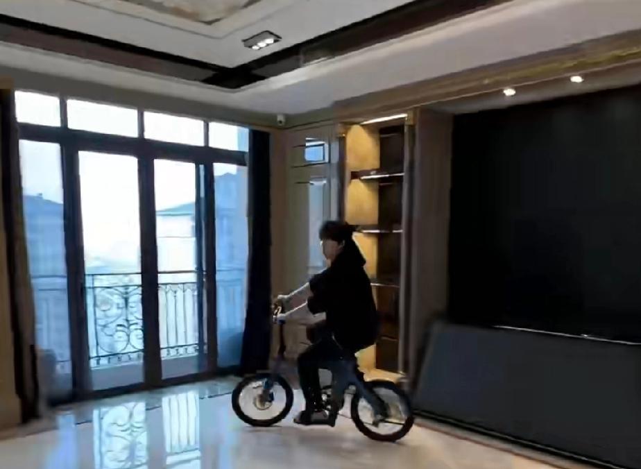 有网友翻出白冰曾在社交平台晒出的豪宅视频,视频中白冰的豪宅大到他可以在里面骑车绕