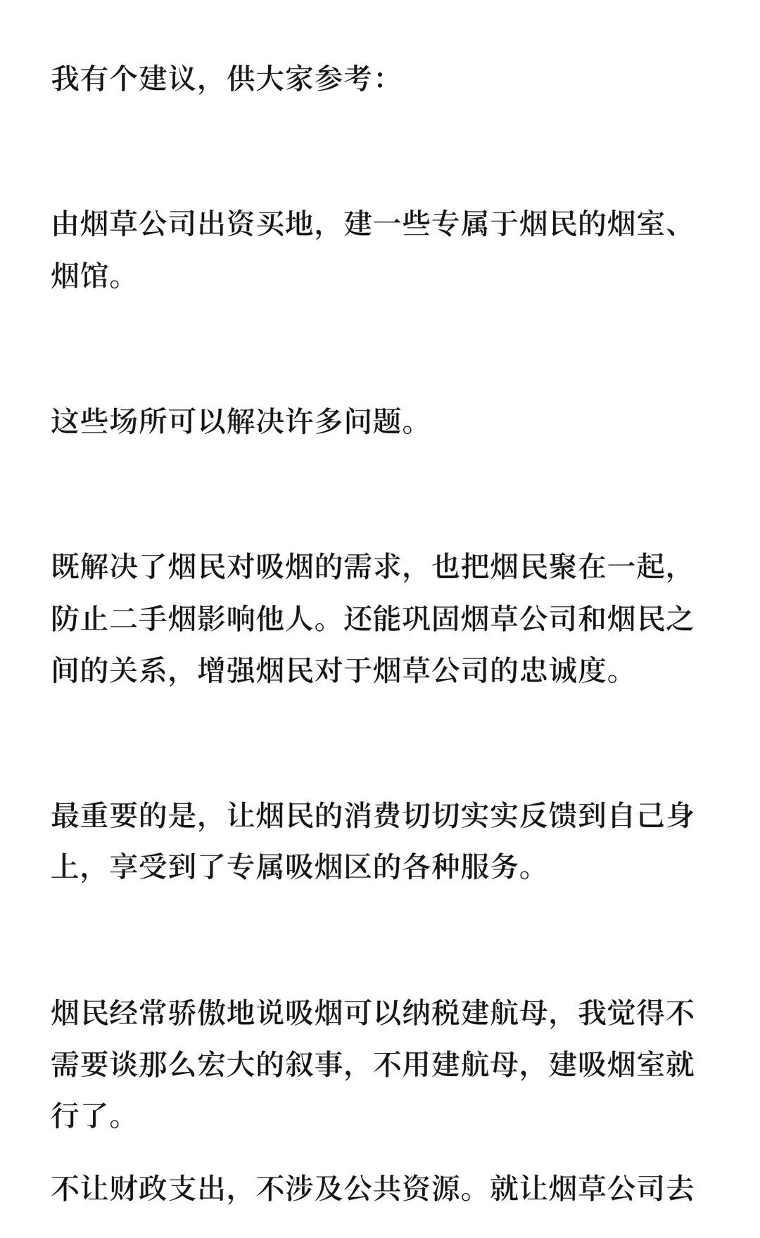 建议烟草公司出资建专属于烟民的吸烟场所,既能满足需求,又能减少争议。