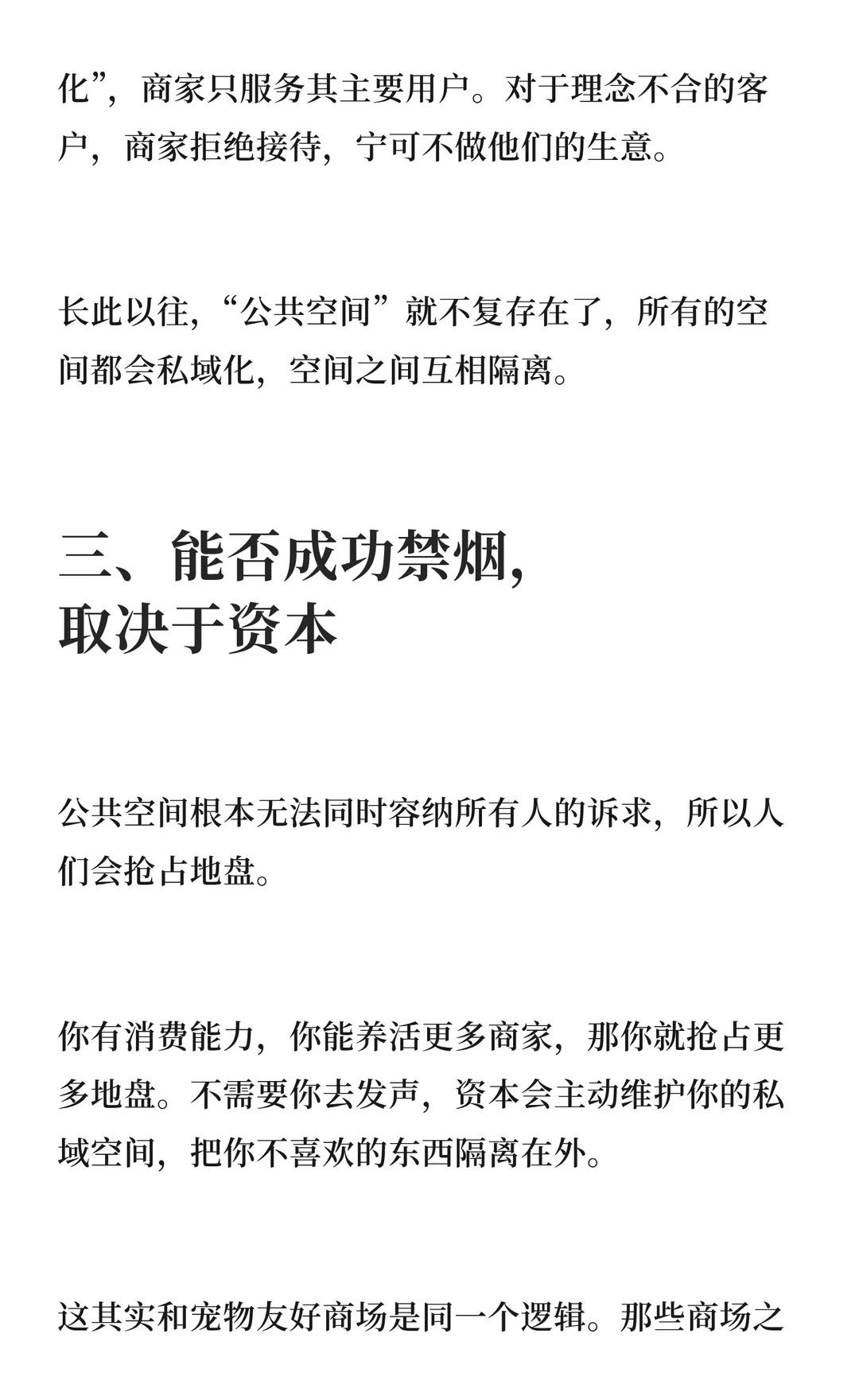 公共空间私域化趋势下,资本决定空间的使用方向,能否成功禁烟最终由资本和市场决定。