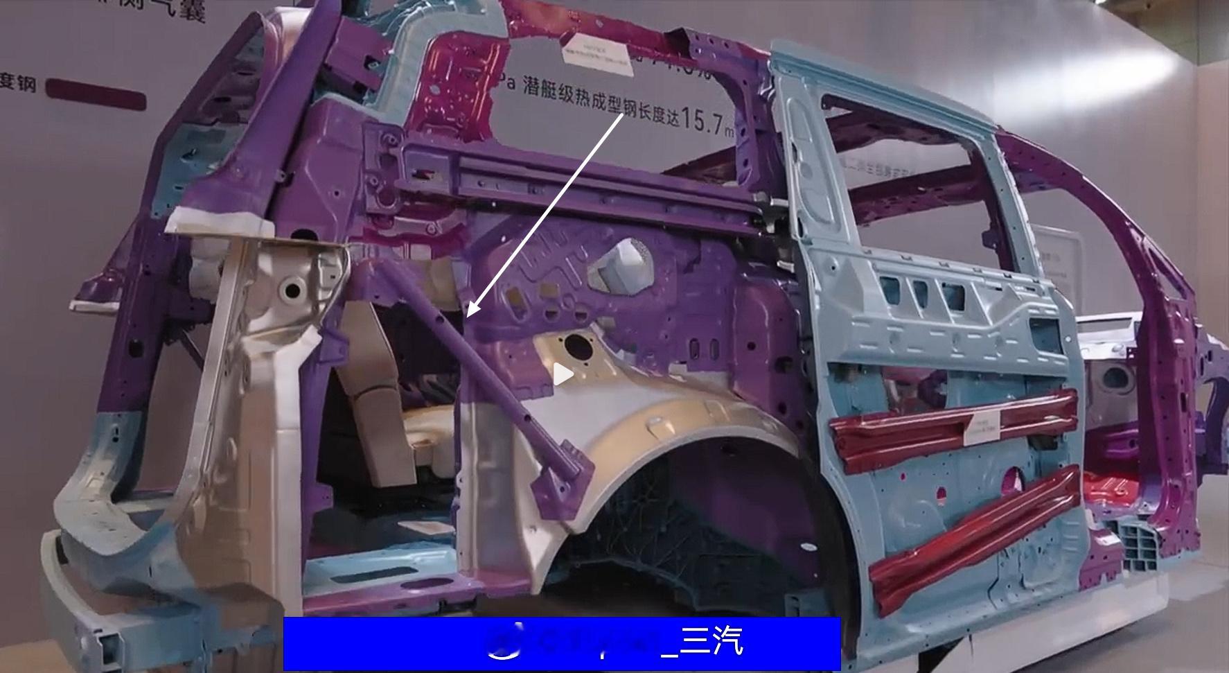 上回说的D环加强件,极狐V9的做法就是最常见的冲压件,见图1白箭头