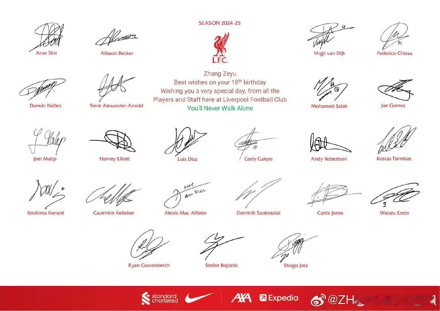 张泽禹连续两年收到利物浦的生日祝福不用刻意宣传却自带分量,利物浦连续两年的生日问