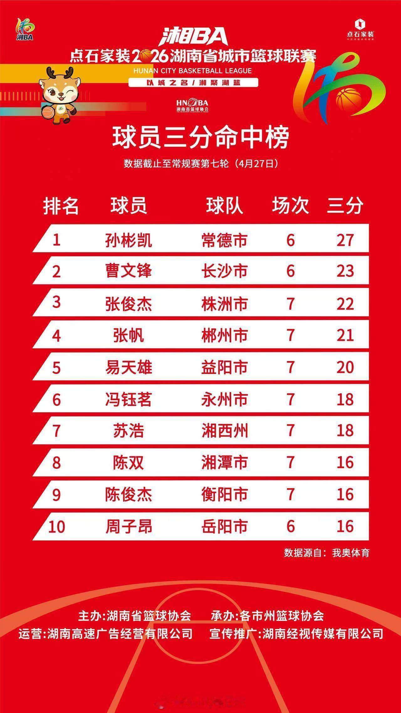 湘BA积分榜湘BA直播 常规赛前7轮主场优势争夺白热化。每一场胜负都可能改变季后