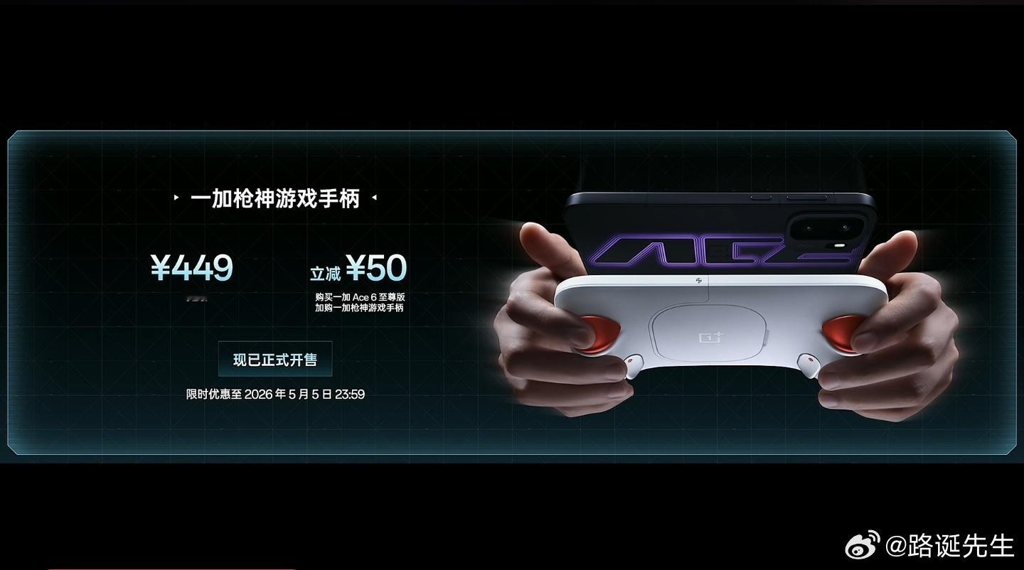 一加Ace6至尊版价格3499元起,国补价格2999元起。手柄价格449元,与手