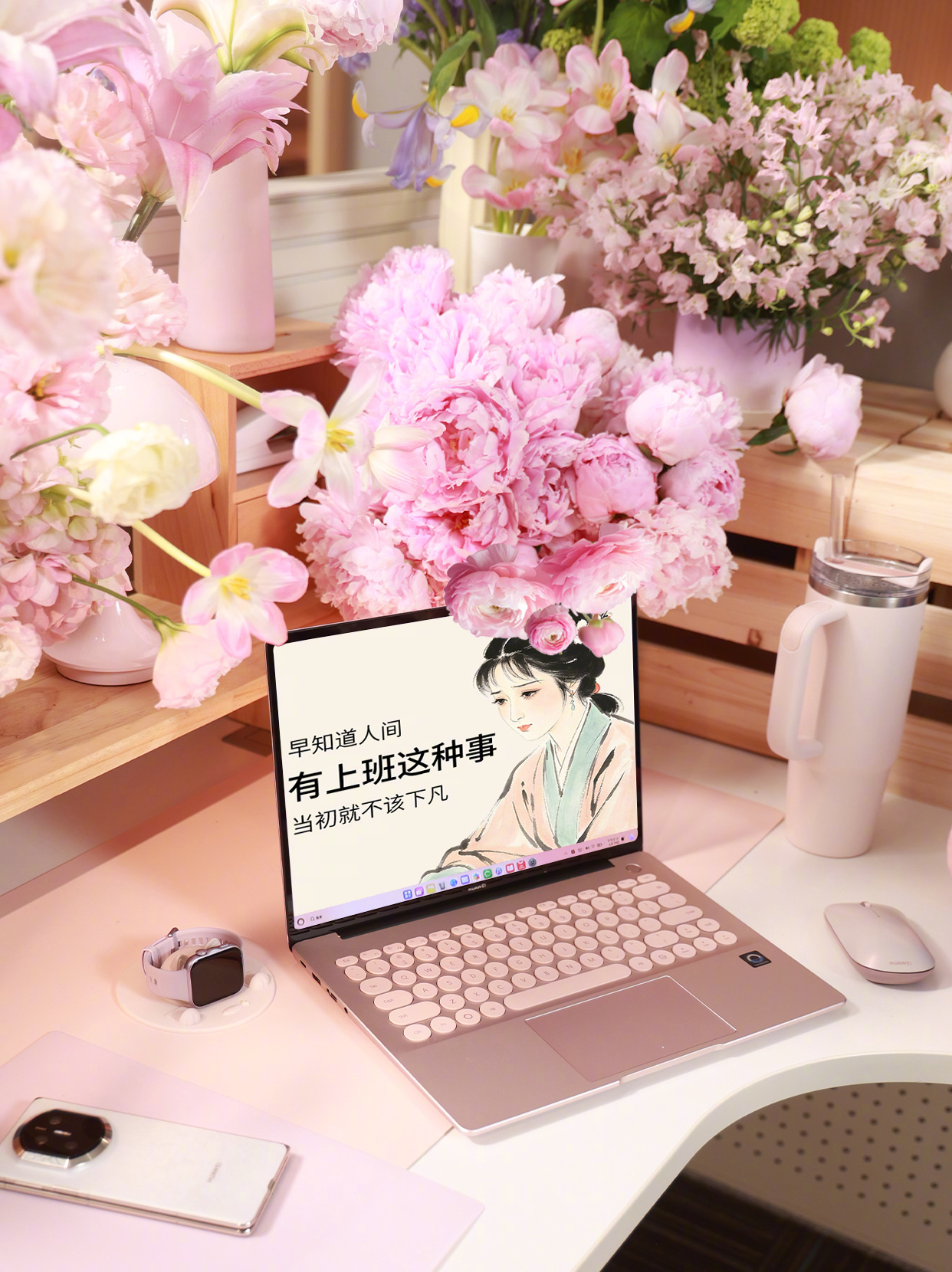 华为MateBook 14 鸿蒙版今天正式开售了,一起把“春天”搬进桌面吧