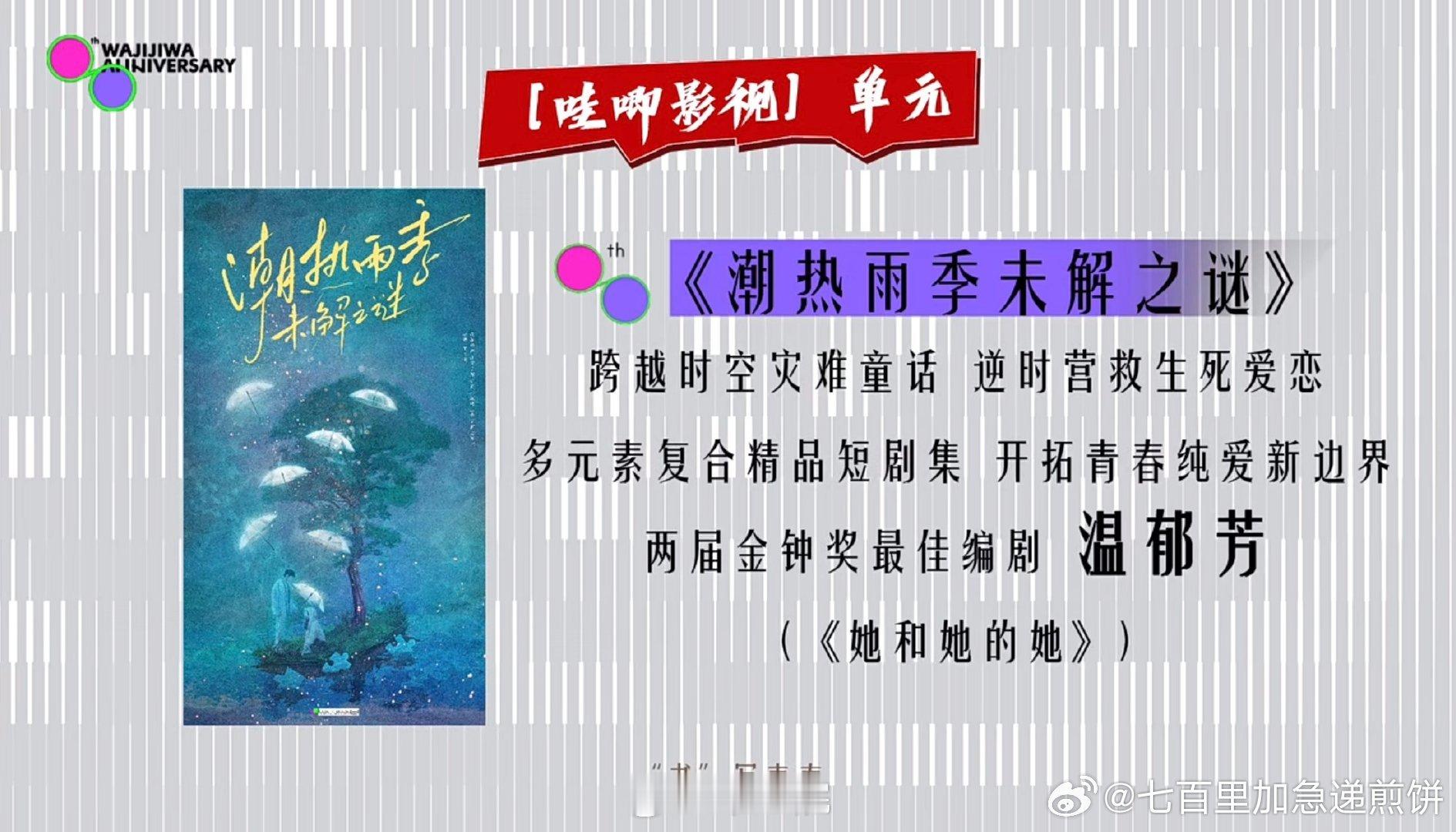 🍉 宋威龙、田曦薇《潮热雨季未解之谜》编剧:徐一天、温郁芳《狙击蝴蝶》