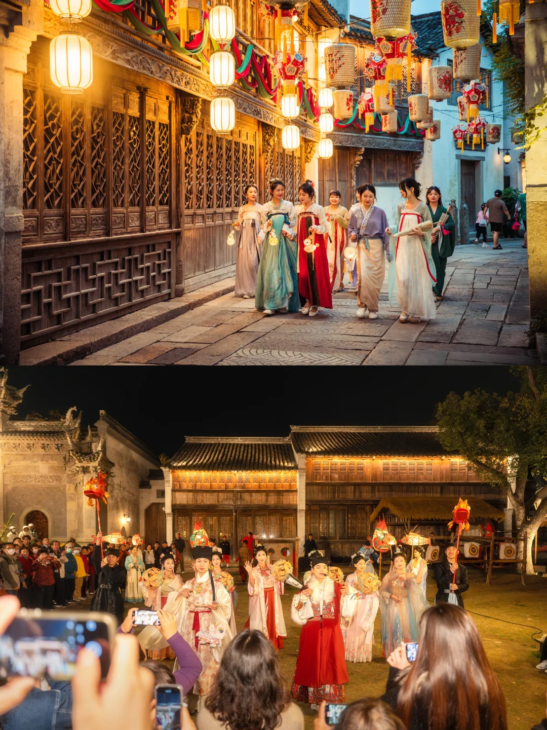 五一演艺重点锁定濮院梦华录,沉浸式夜秀全新升级,十二花神水上巡游焕新亮相,华美妆造搭配唐宋风韵古镇场景,全景流动观影,带你一秒穿越至宋式繁华盛景,感受“花光满路,何限春游”的江南古韵,千万别错过这场视觉盛宴