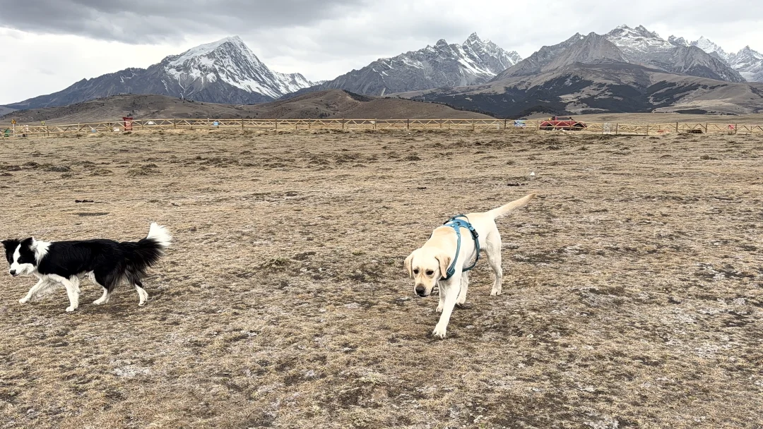 再就是格聂之眼,可能是季节的原因,这里还没有水,另外如果这里不飞无人机,真的看不出来什么,带小狗下去跑了跑,3900米海拔,小狗仍然跑得很欢,它们不高反吗?好神奇啊