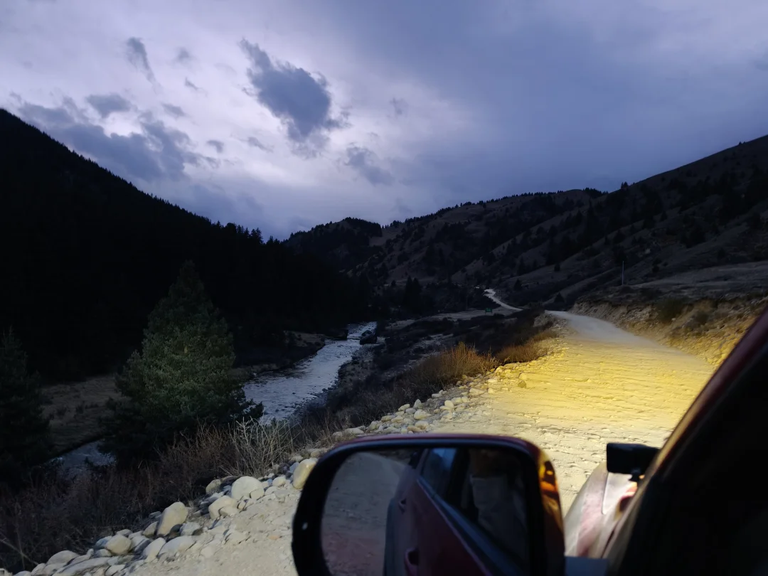 大约走了20多公里,走上了柏油路,但柏油路走起来也不省心,落石塌方随处可见,偶尔还有修路,速度别开快。我走的那天,全黑天不说还赶上了巨大的暴雨,大到车灯不好用、雨刷不好用,这就是格聂的魅力吧,后面上到高原4900米的垭口,雨变成了雪,真的很神