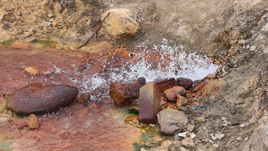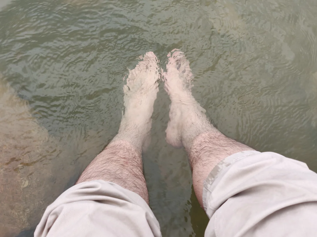 沿途住宿、汽车充电倒是好解决,很多村镇都能接待,就是没加油站,在一处过桥的地方,旁边的小河居然是个野生温泉!果断停车去泡泡脚,不一会,还有附近村寺庙里的喇嘛来温泉洗澡,他们倒是放得开,直接脱衣服泡下去了,简单对话几句,我也没听太懂,但扎希德勒,永远是藏区的通行密码