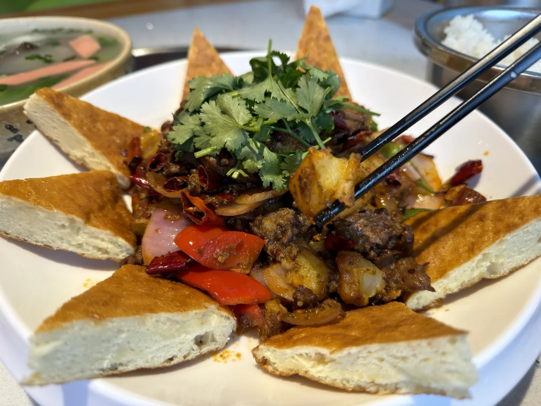 理塘,丁真大家都知道,其实还有一家丁则川菜理塘菜我也非常推荐,老板97年的,就愿意创业,他的餐厅有三家,主打健康,食材真的很新鲜,没有任何添加剂,好吃。我点了牦牛肉盖被、酸奶、麻婆豆腐,别提多下饭了!吃完老板还送了我两瓶椰汁,所以我浅浅广告一下不过分吧?