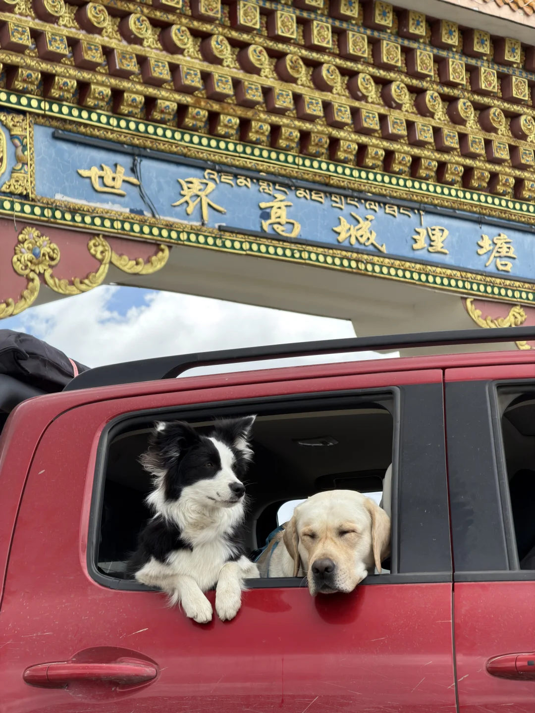 在这里4000米海拔,小狗非常高兴,在理塘大门跑来跑去,居然都不高反,但是不建议所有小狗都随便跑,各位主人还是要观察一下狗的状态