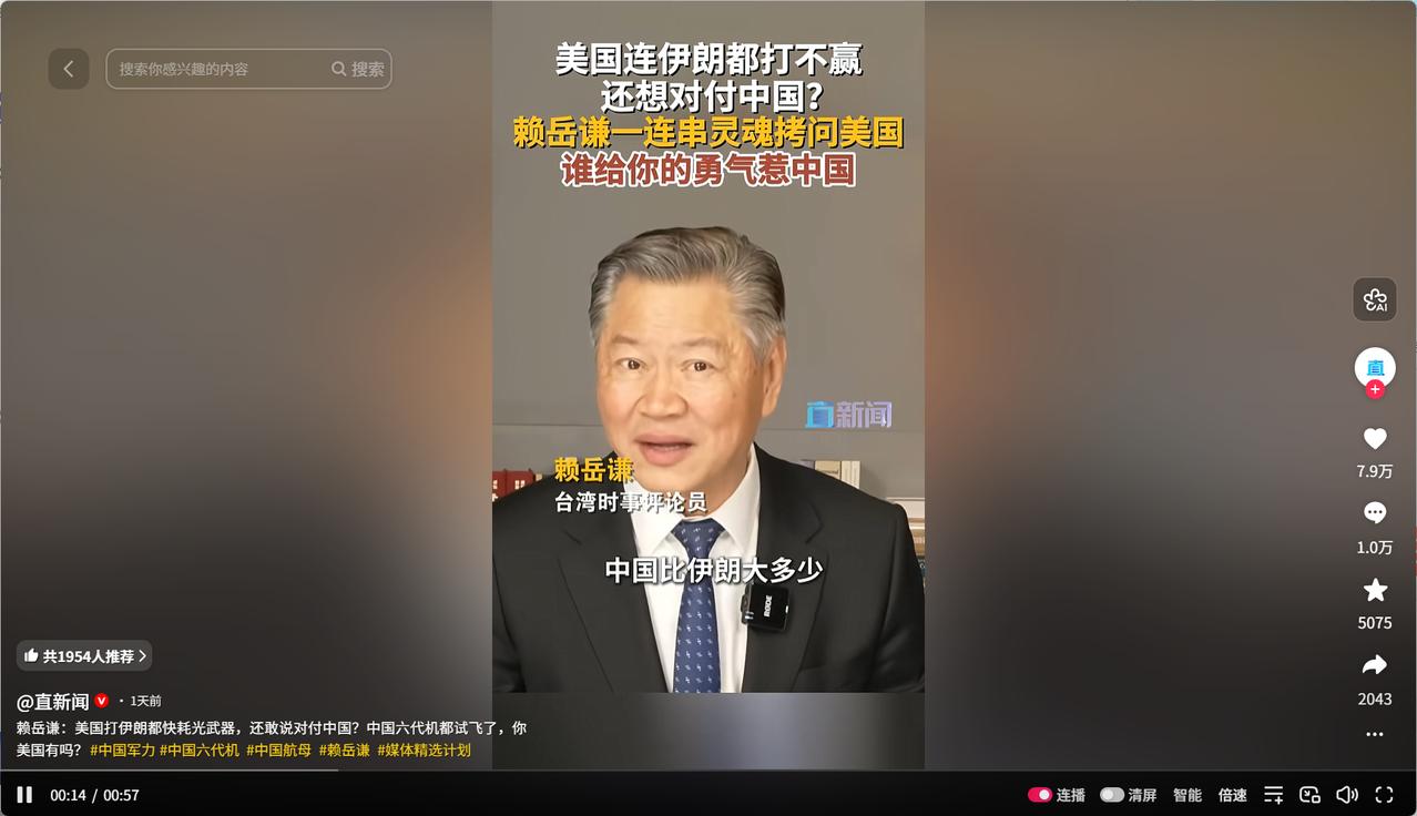 赖岳谦就犀利地指出,美国连打伊朗都打得如此吃力,武器库存频频告急,还大言不惭地说储备的巡航导弹是为了对付中国,这是在给自己壮胆还是骗国会预算?