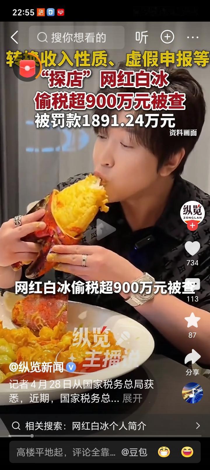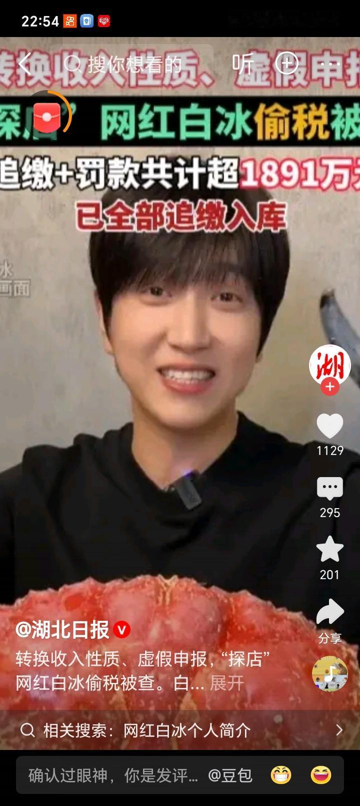 网红白冰因偷税逃税被重罚,依法追缴与处罚共计1891.24万元。