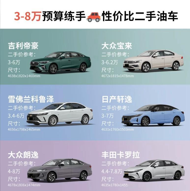 东北新手练手选油车,重点看耐造、抗寒、好维修!3-8万预算这6款闭眼冲,适配东北冬季路况,性价比拉满👇