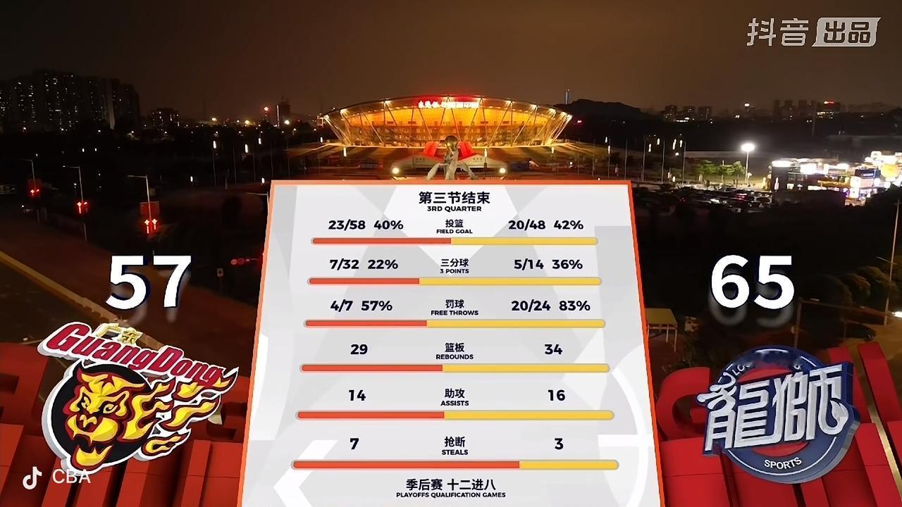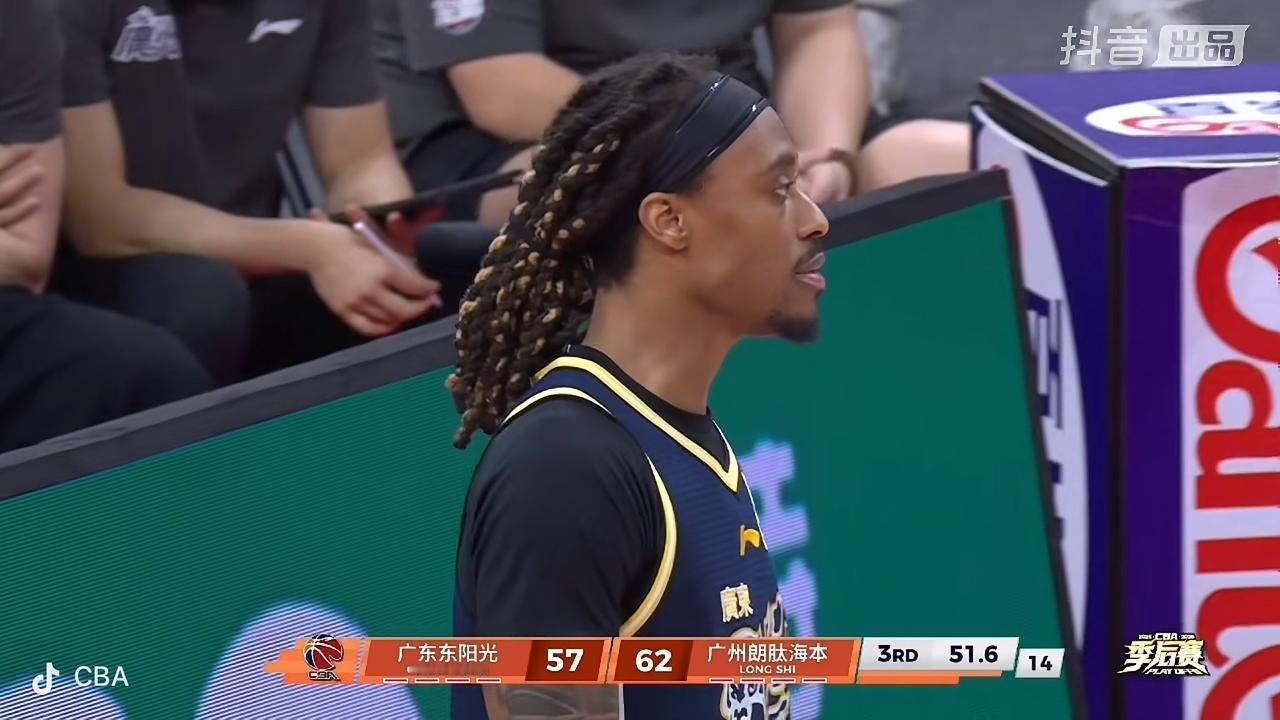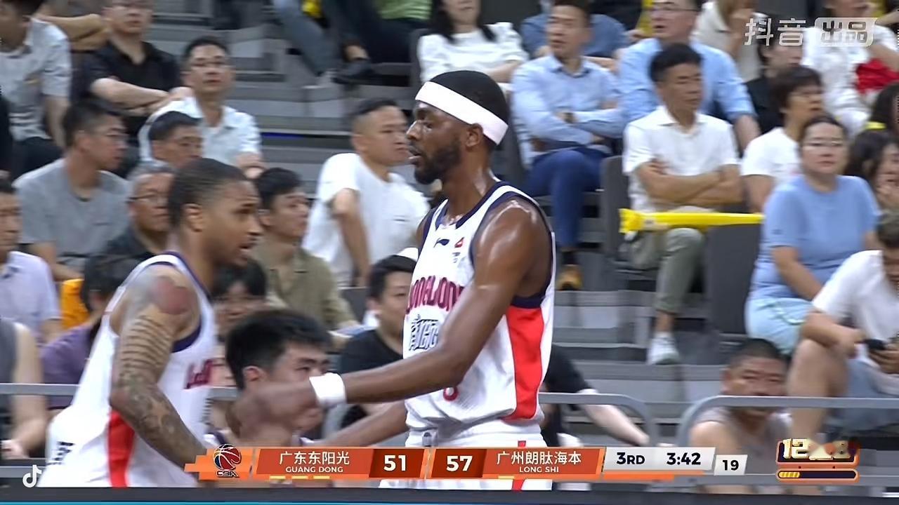 在刚刚结束的广州朗肽海本男篮客场挑战广东东阳光男篮的第三节比赛中,广州男篮暂时以65比57领先