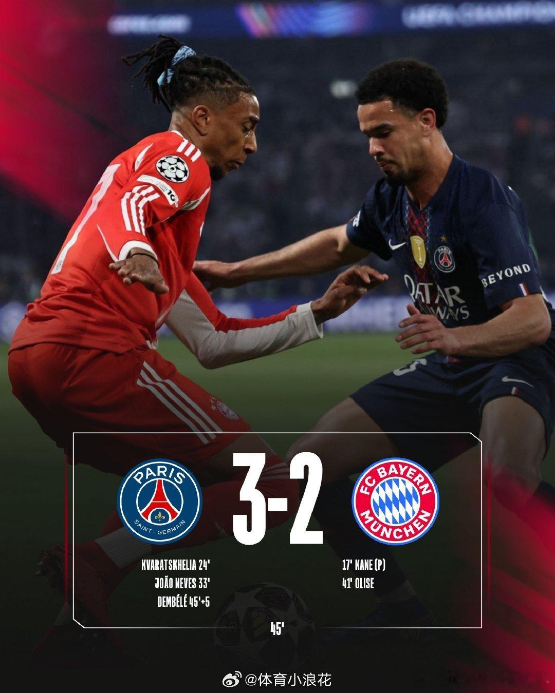 半场结束,巴黎暂3-2领先拜仁大伙如何评价上半场比赛 巴黎圣日耳曼vs拜仁 c