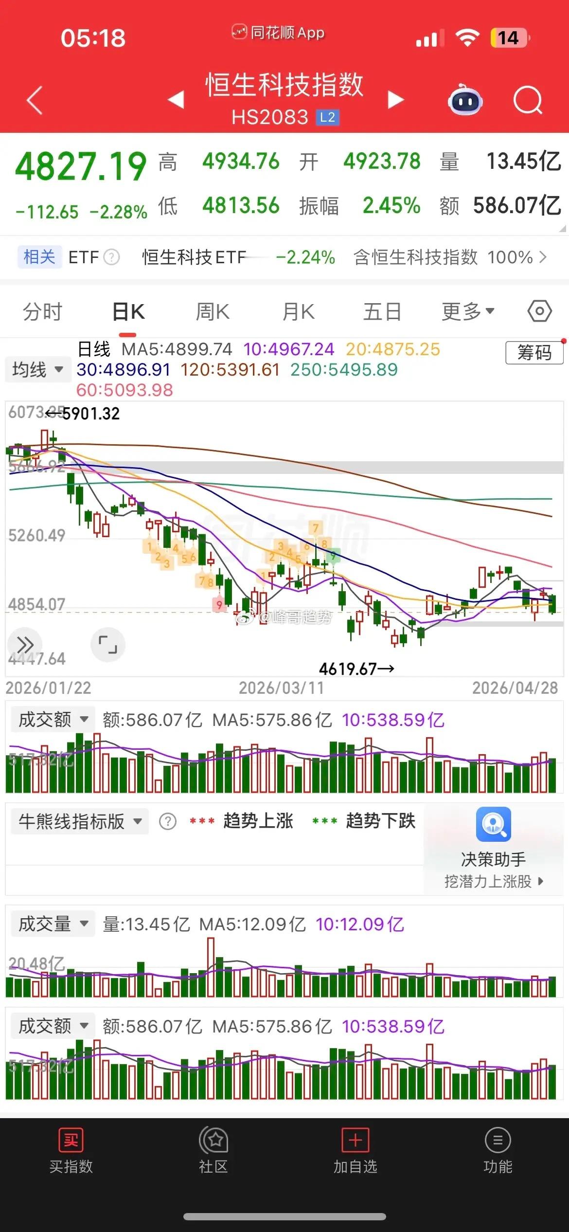 一觉醒来,原油大涨超3%,现货黄金跌近2%,白银跌近3%,热门中概股普跌,纳指金龙指数跌0.49%,阿里、拼多多、哔哩跌逾1%,蔚来涨超2%,小鹏跌逾2%,百度近2%,阿特斯太阳能大涨近7%,富时A50跌0.08%,恒生主连涨0.21%,这样看今天我们市场依旧会惯性低开,不过低开高走概率大,而港股今天大概率会小幅高开。