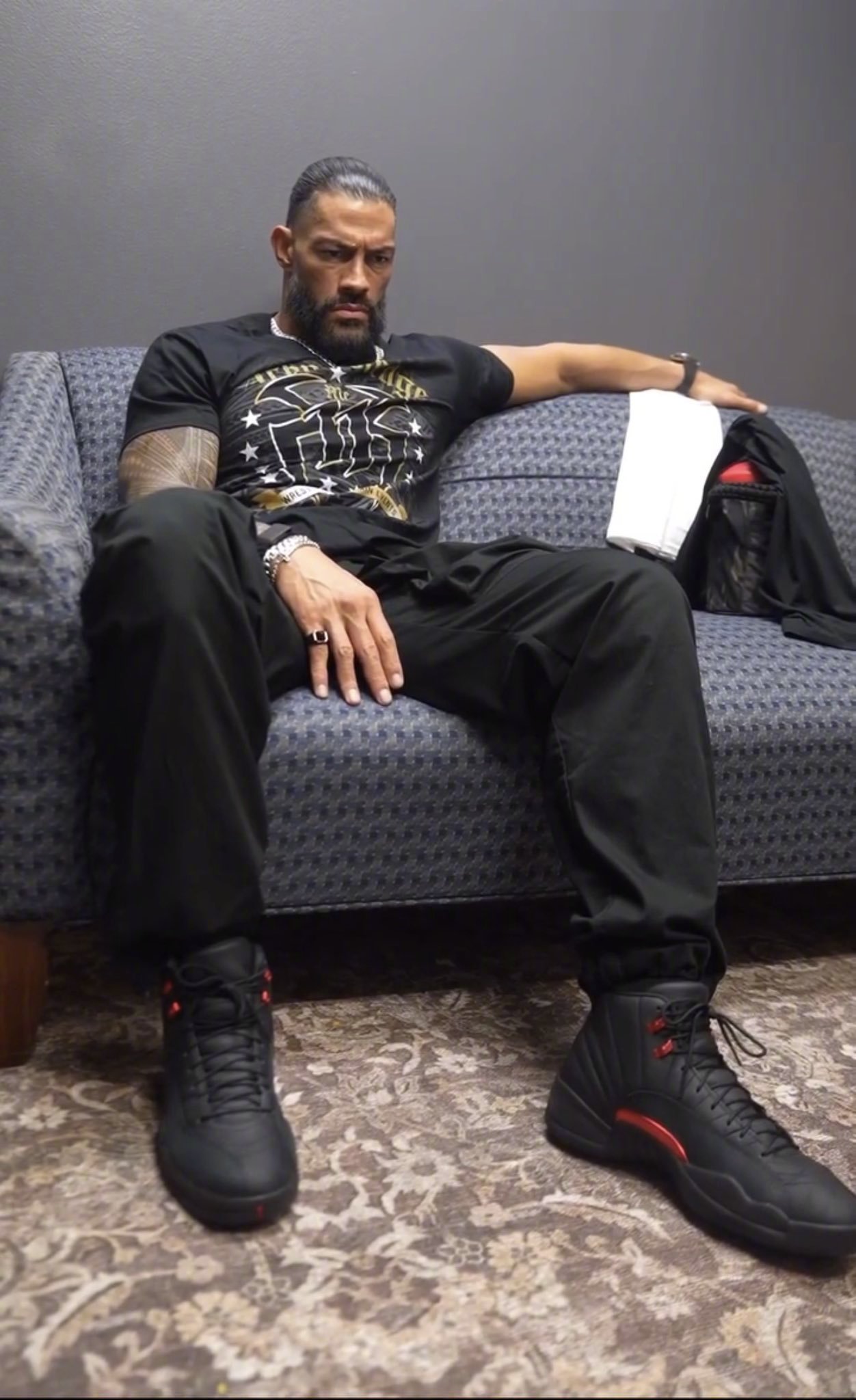 WWE世界重量级冠军罗曼·雷恩斯上脚即将回归的AJ12「Bloodline」⚫🔴