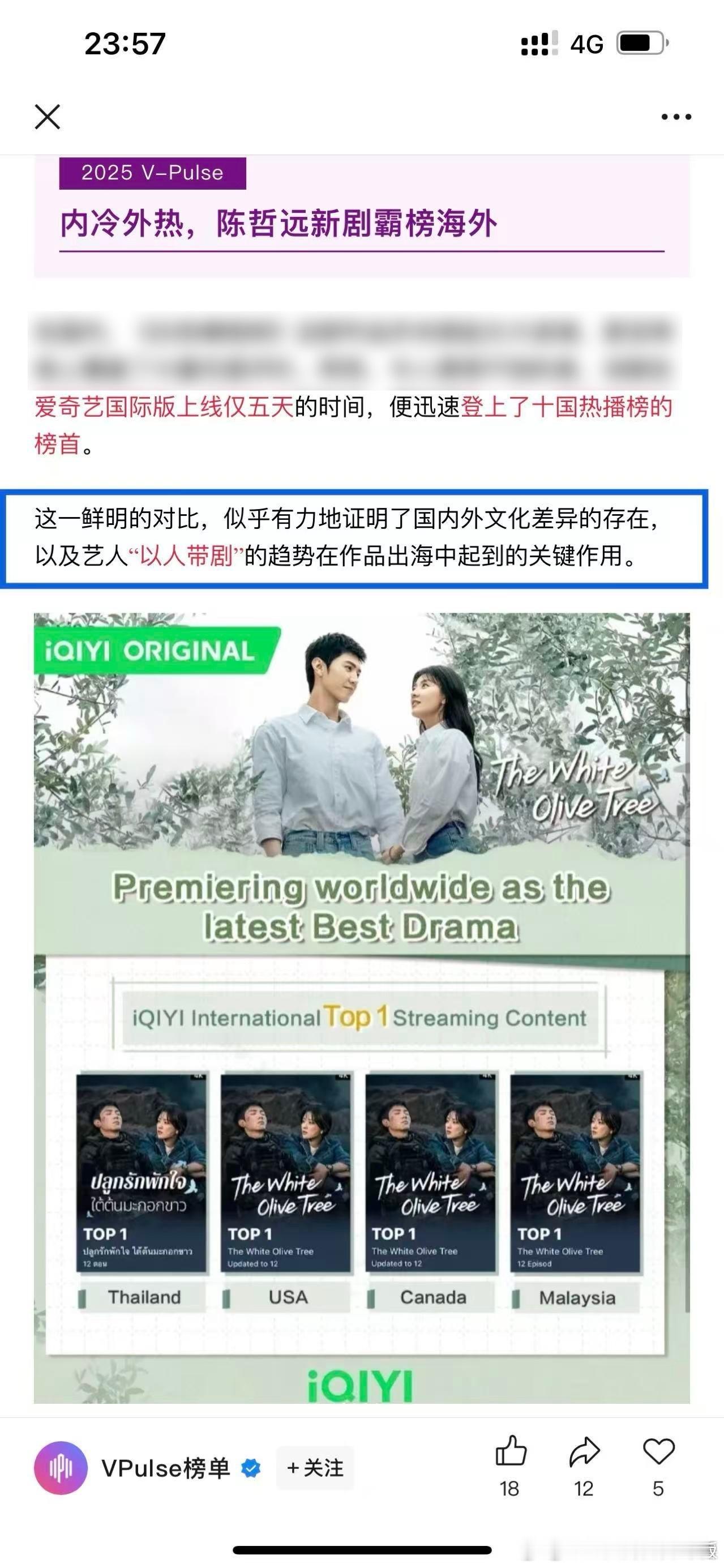 剧集在播出期间,全球曝光量突破20亿次,不仅在🥝国际版覆盖的12个国家和地区登顶播放量榜首,更在泰国、韩国的谷歌搜索趋势中占据主导地位。这种热度并非单向输出,而是形成了“海外爆火反哺国内”的奇妙闭环,在开播半年后,凭借海外口碑的持续发酵,国内观众的“自来水”挖掘,该剧在国内平台单日热度暴涨40%,创下收官半年重返榜首的行业奇迹!