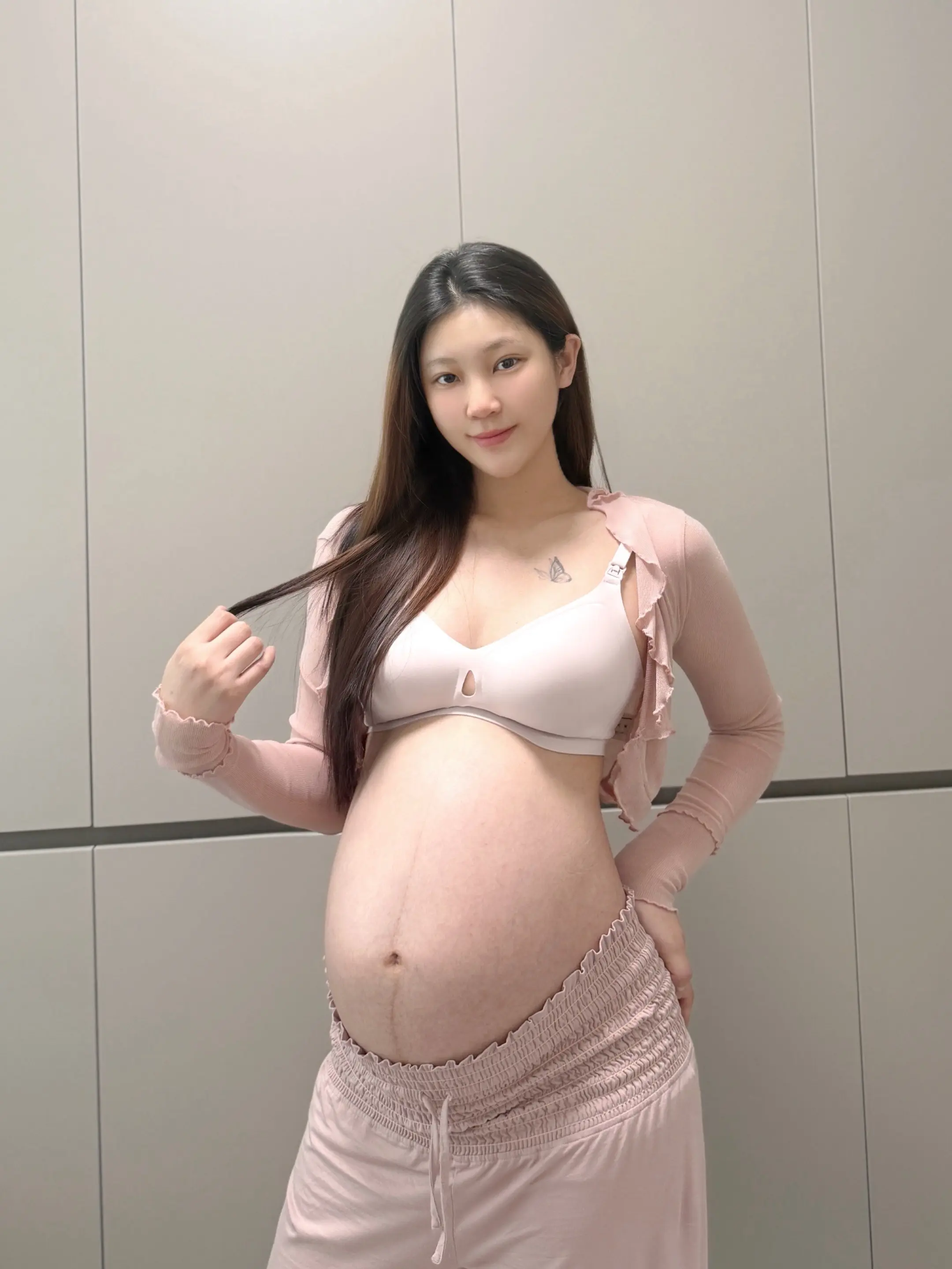 又到了屯哺乳内衣的时候了。整个孕期就是屯屯屯,新买了几件内衣为产后做准备,身上这件粉粉的超温柔!是母伴的 穿着也舒服~马上预产期了,好担心东西没备齐啊啊啊啊