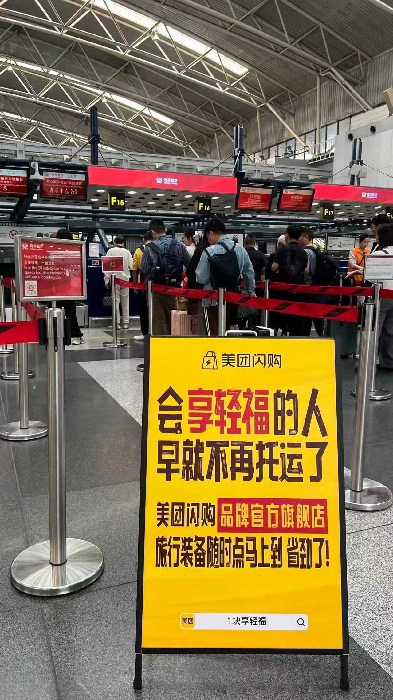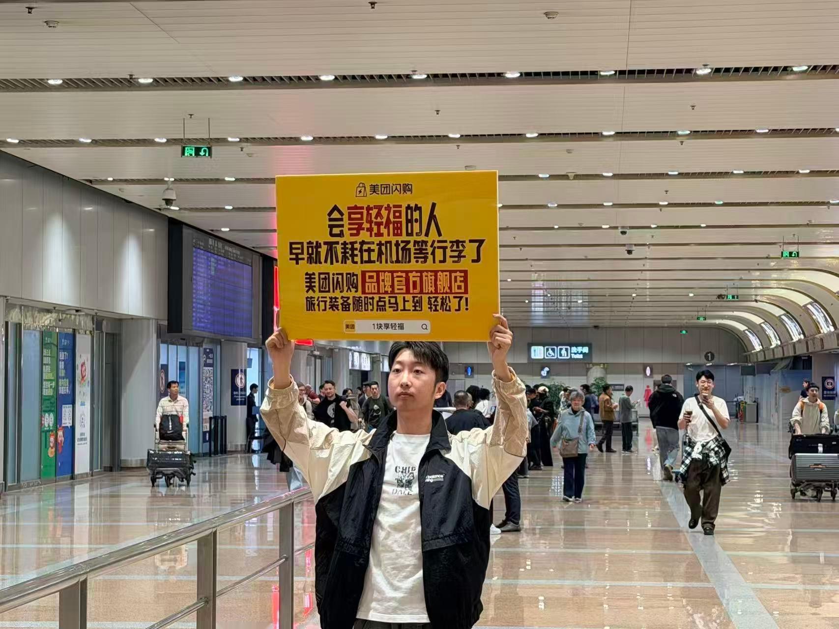 空包出游用美团闪购谁在机场被美团闪购黄色立牌戳中!出行不用塞满行李箱,认准美团闪