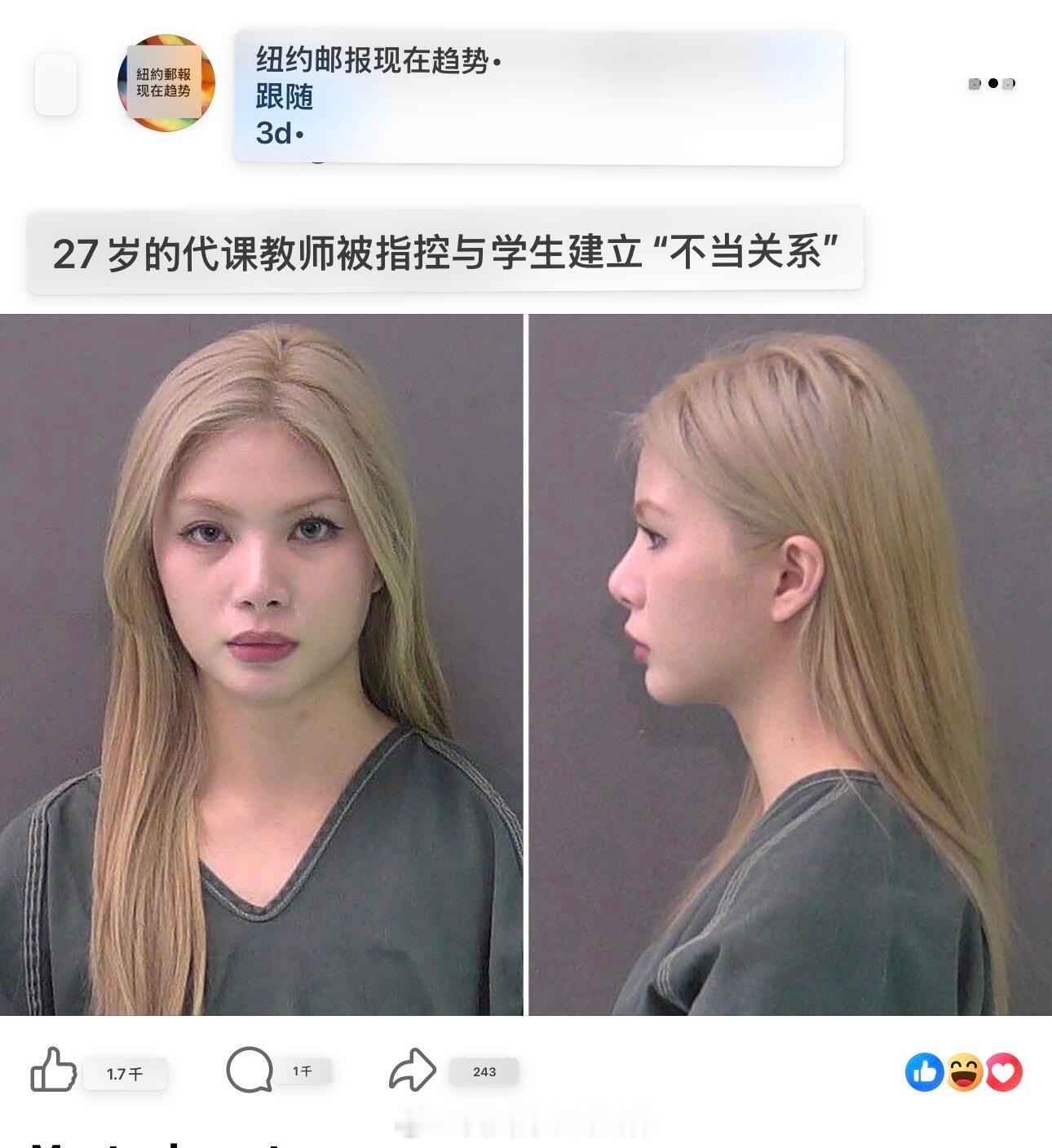 美国一女老师被指控与学生建立不正当关系,评论区没有一个人抨击谴责她的,都是在感叹