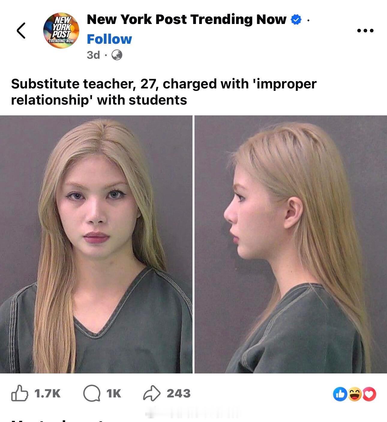 美国一女老师被指控与学生建立不正当关系,评论区没有一个人抨击谴责她的,都是在感叹自己当时上学时怎么遇不到这种老师……