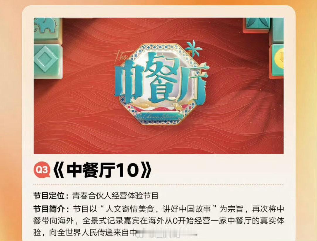 曝中餐厅10力邀杨紫王俊凯回归 网传中餐厅10暂定6月19日播出 啊啊啊啊啊。不愧是宠粉的节目组啊!!《中餐厅10》这个阵容夯爆了吧!!除了周杰伦和昆凌的夫妻档,还有王俊凯和杨紫的梳头姐弟。就是说谁看了不说一句内娱顶流完颜团啊!!!