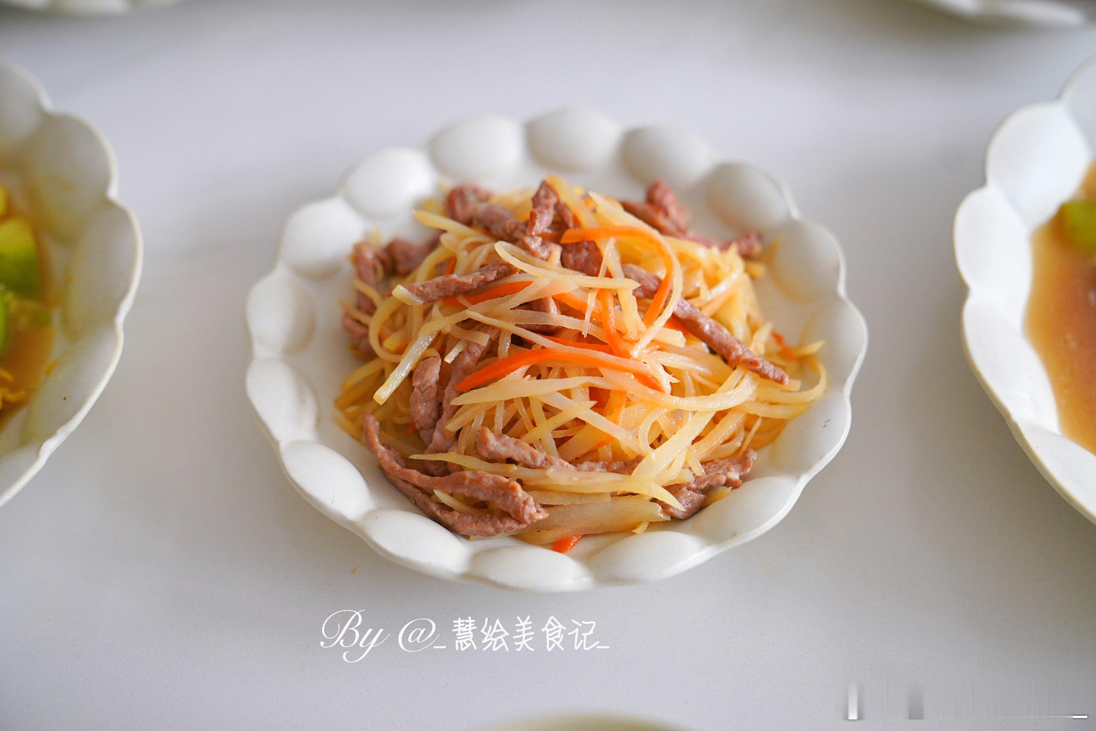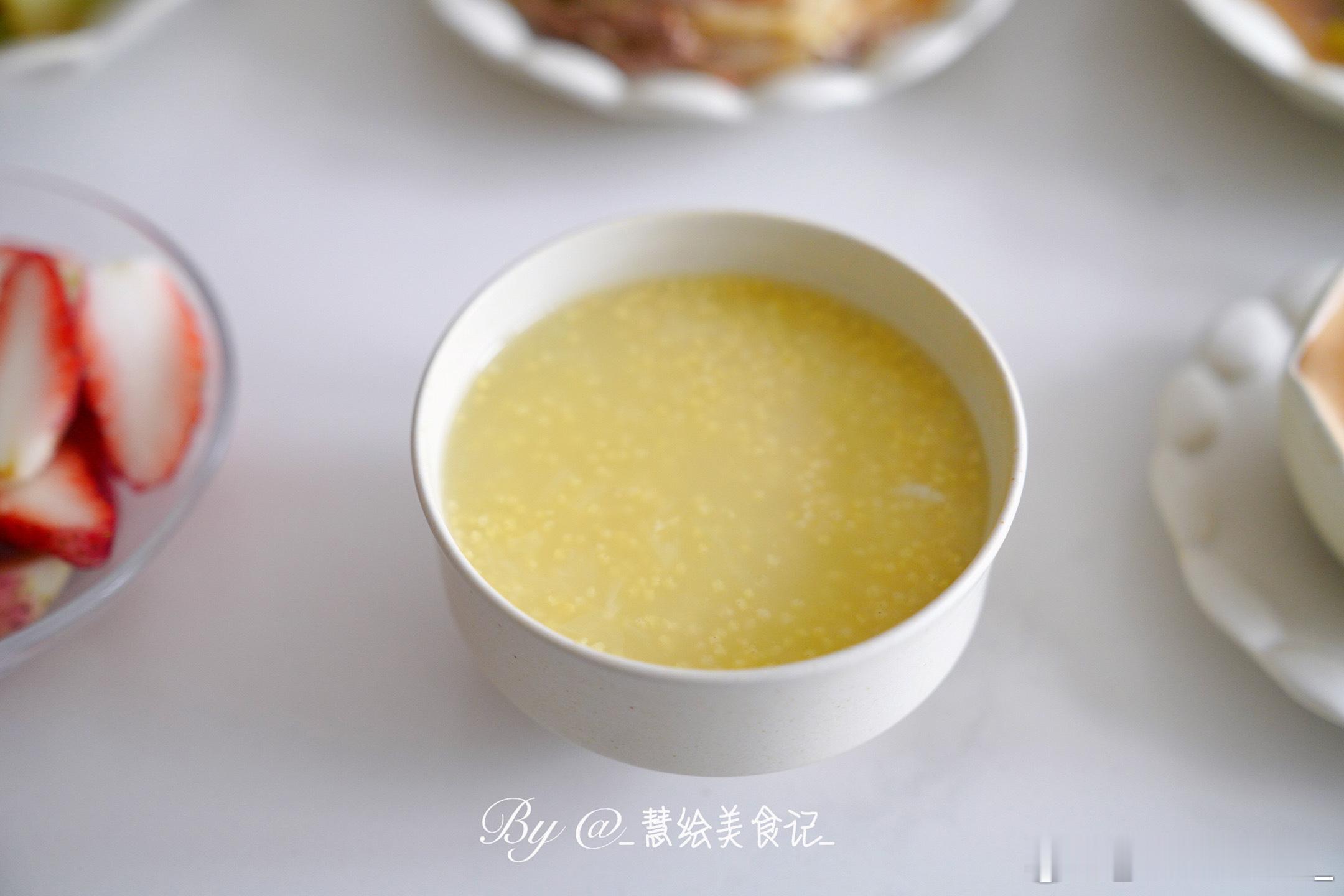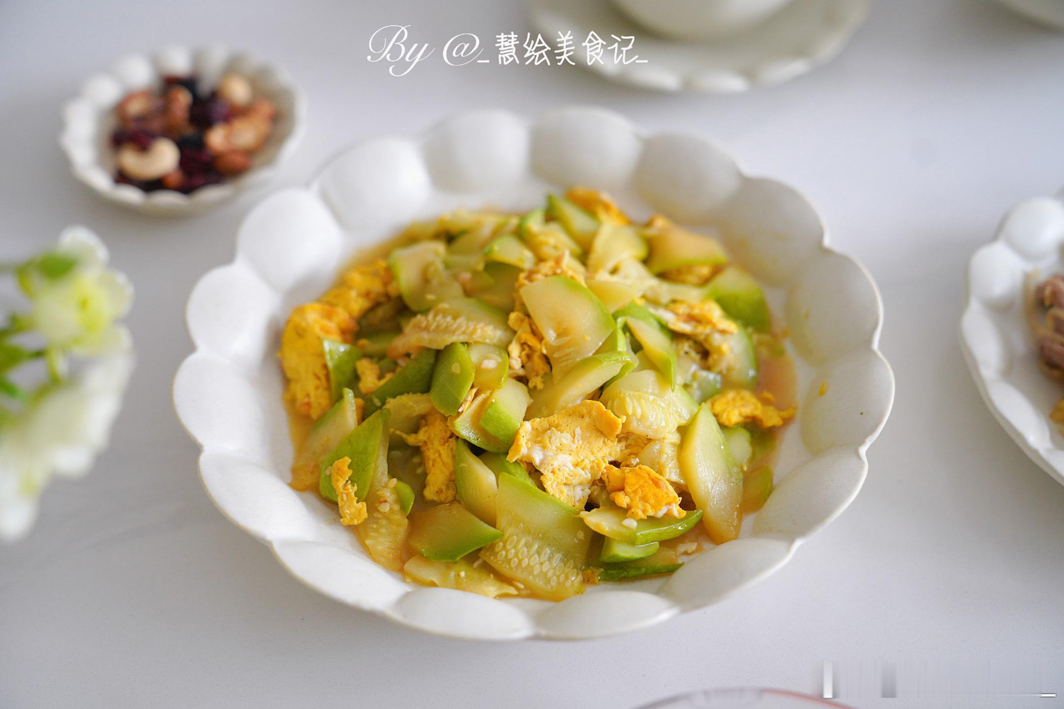 周三好呀早餐西葫芦炒鸡蛋、蒜蓉丝瓜、炒三丝、小米粥、红豆面包、拿铁咖啡、草莓、坚果~我的美食日记