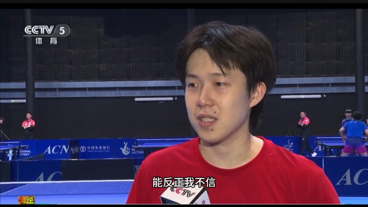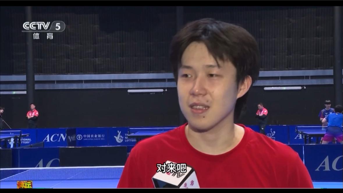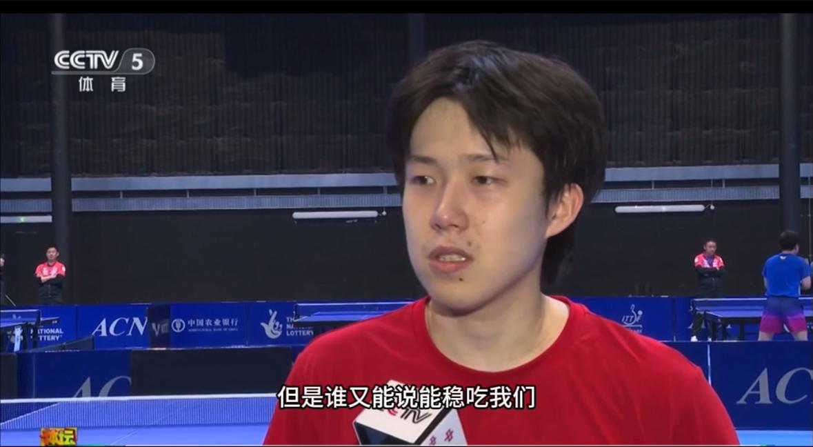 王楚钦先是说明了当前男团整体形式,他说:“因为现在已经是这样的一个局面(男队整体实力不占优,夺冠任务艰巨),大家其实都能看清,我们也更加明白,到底是一个怎样的局面。”随后,他话锋一转:“但谁又能说稳吃我们,或者说能稳赢我们,反正我不信,对,来吧!”