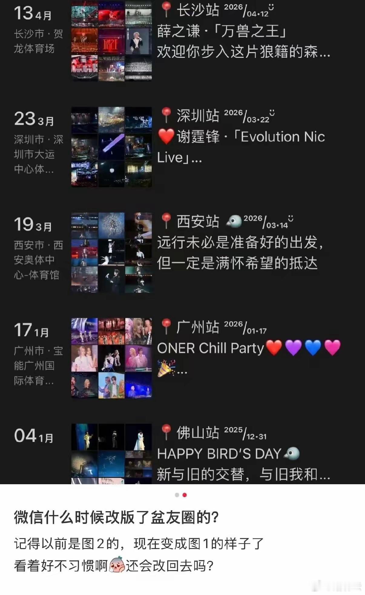 朋友圈改版微信朋友圈近期对 iOS 8.0.71 及以上版本用户进行了界面排版改版。此次调整主要集中在文字与图片的布局及浏览入口上。文字描述从配图 右侧 移至 上方,发布日期显示格式同步精简 。页面右上角新增“朋友圈相册”入口,支持按 年、月、日 视角缩放浏览历史动态,类似苹果相册 。目前主要为 iOS系统更新,安卓及鸿蒙系统暂未大规模生效 。很多人表示“一时不习惯”,但也有人觉得“文字前置后,刷朋友圈的信息获取效率变高了”。大家觉得哪个更好看呢?