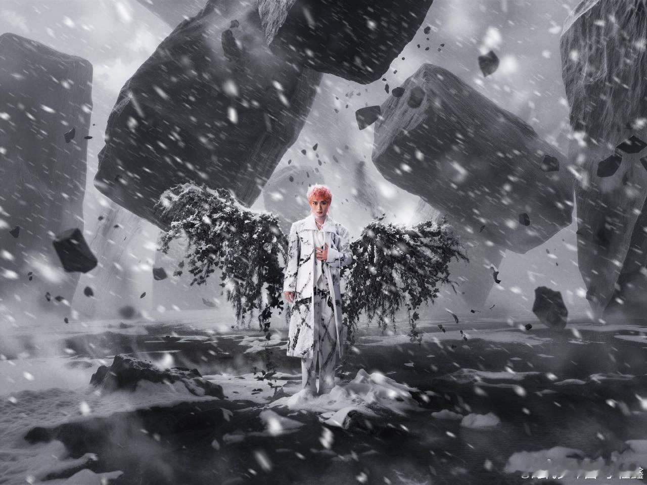 丁程鑫橙发丁程鑫末日美学 丁程鑫新歌《人造神》平面发布,丁程鑫橙色发型亮相,在漫天风雪下,仿佛展开羽翼的末日神明。
