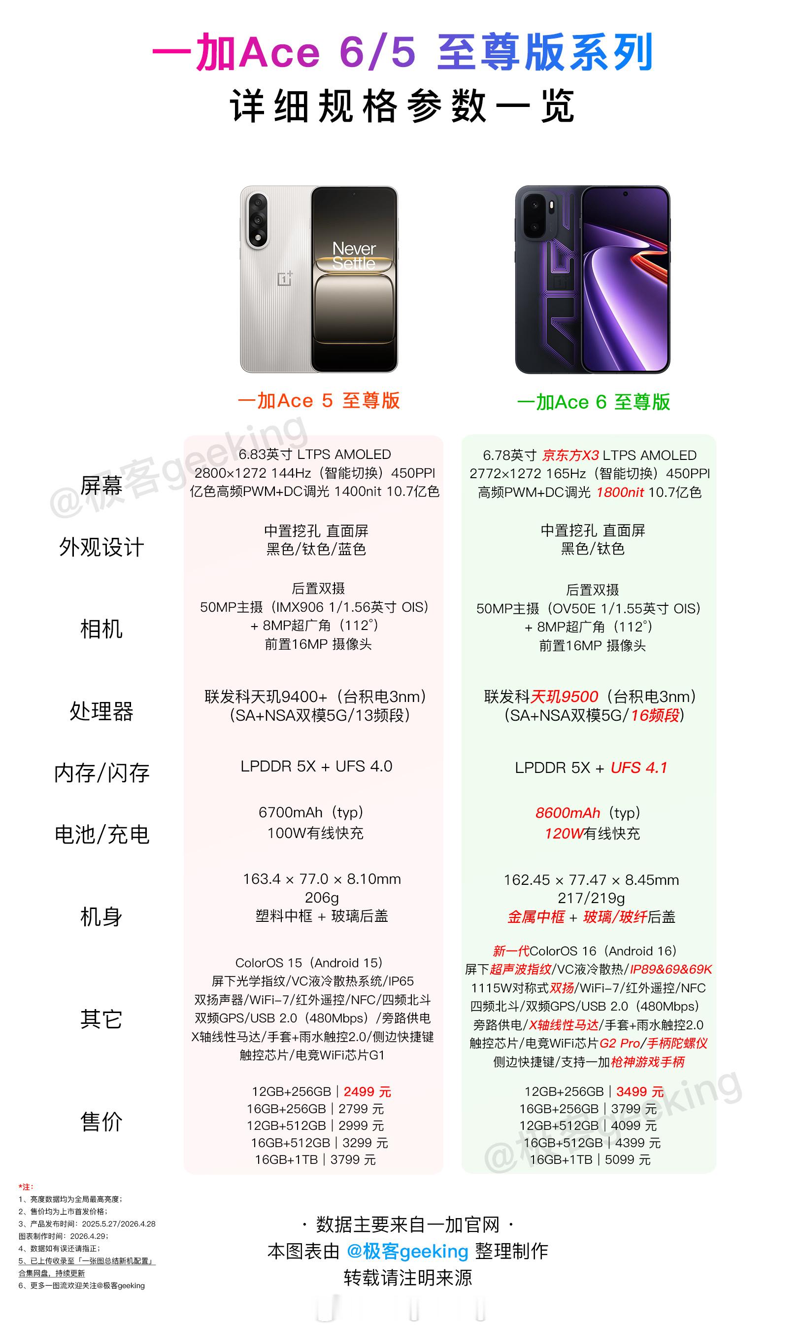 一张图读懂一加Ace 6 至尊版有何升级和变化?详细配置参数对比