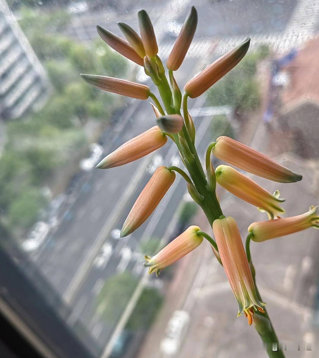 没怎么管理的芦荟,长得肥肥嫩嫩的,开着漂亮的花,真招人喜欢,简直太神奇了,芦荟也开花。