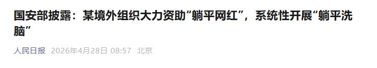4月28日,国家安全部通过官方渠道发布信息,揭开了网络上一些“躺平”“摆烂”言论背后的真相。