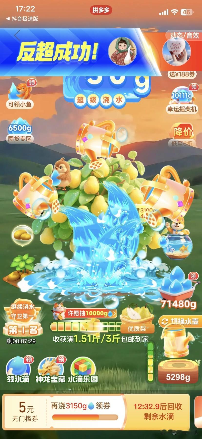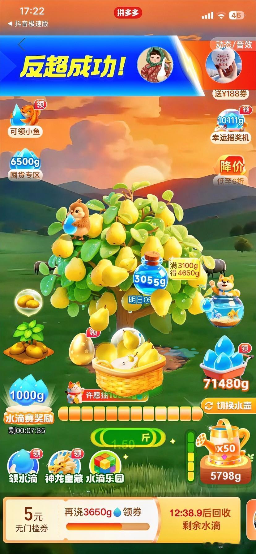 前几天,拼多多果园给我发消息,让我去给果树浇水,我去了,给了我很多水滴,我又开始给果树浇水了!又开始期待果树早日成熟了!小伙伴们,你们还在玩这个游戏吗?