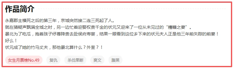 [偷笑R]当之无愧的大女主文学,整个故事权谋戏为主,全员智商在线,权谋线写得鞭辟入里,悬念迭起。