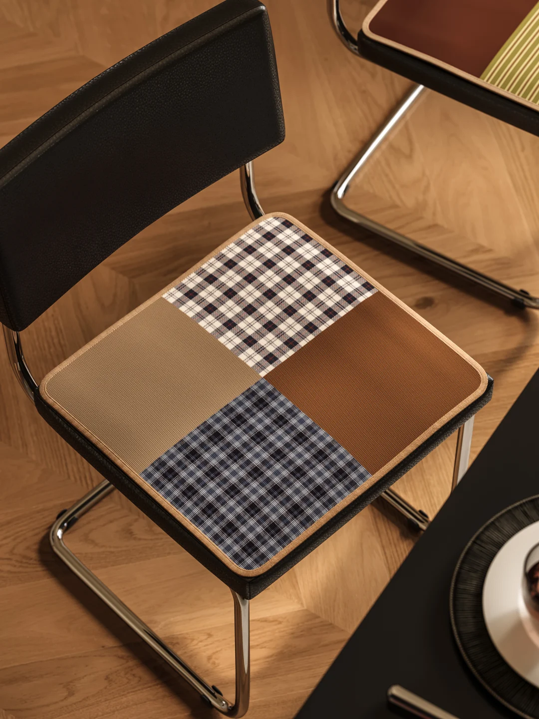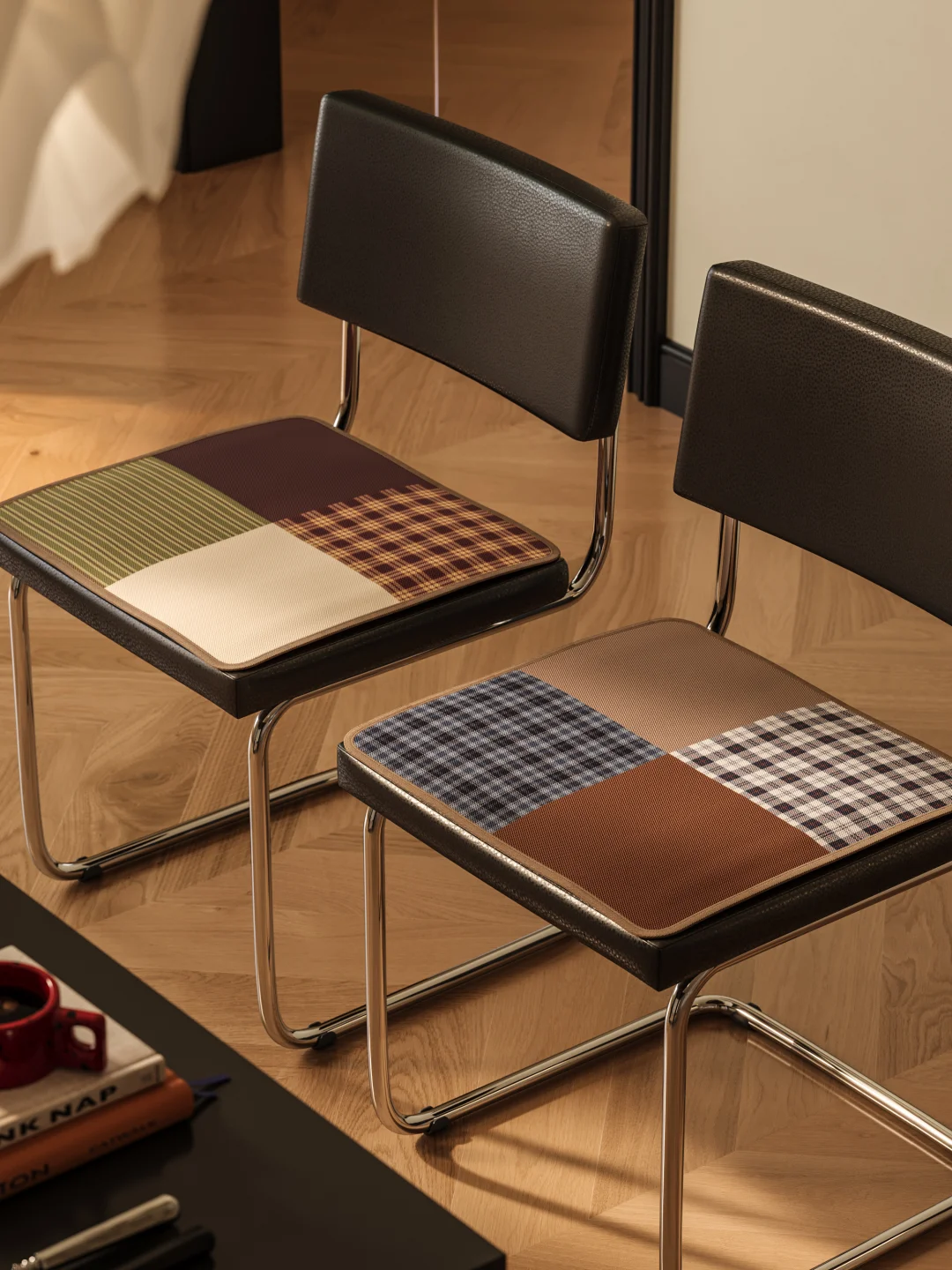 低饱和棕咖 + 格纹拼接
