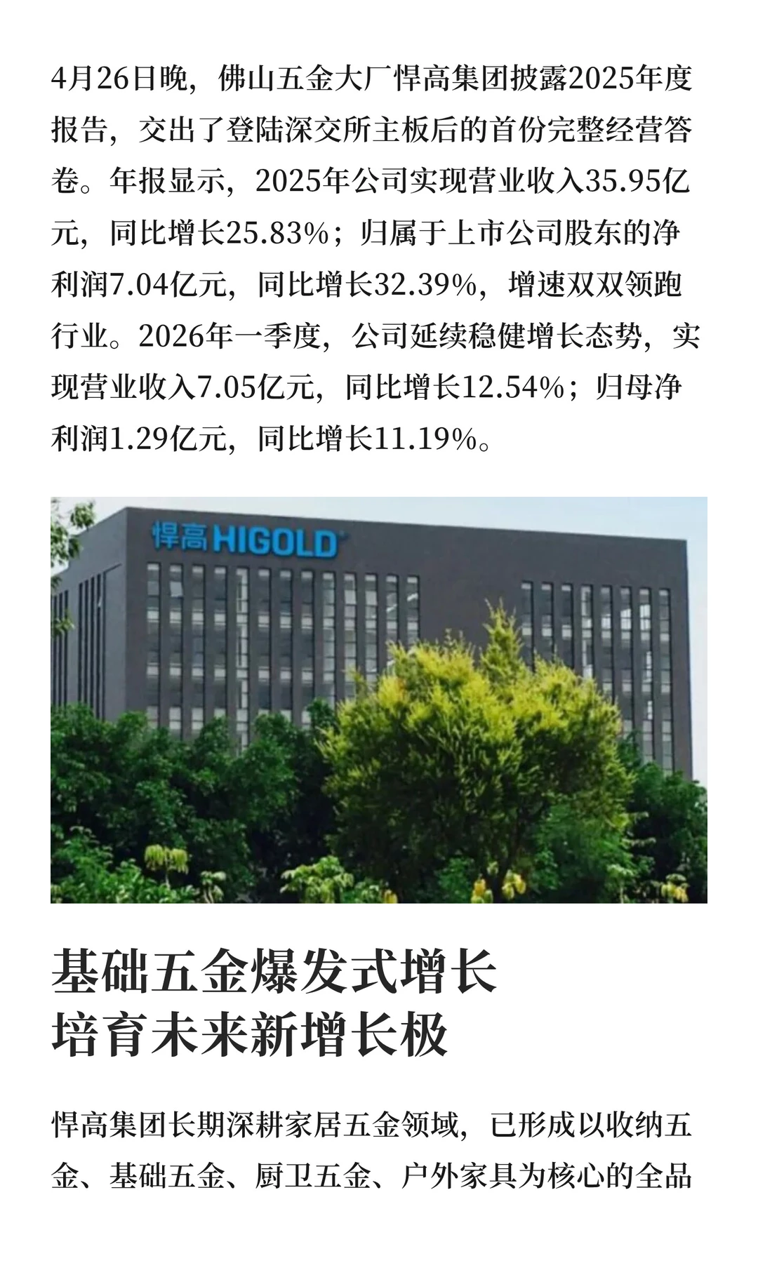 营收35.95亿!佛山五金大厂披露成绩单