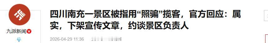 信息来源:九派新闻(四川南充一景区被指用“照骗”揽客,官方回应:属实,下架宣传文章,约谈景区负责人 )